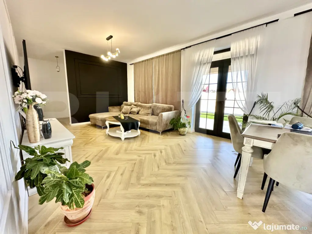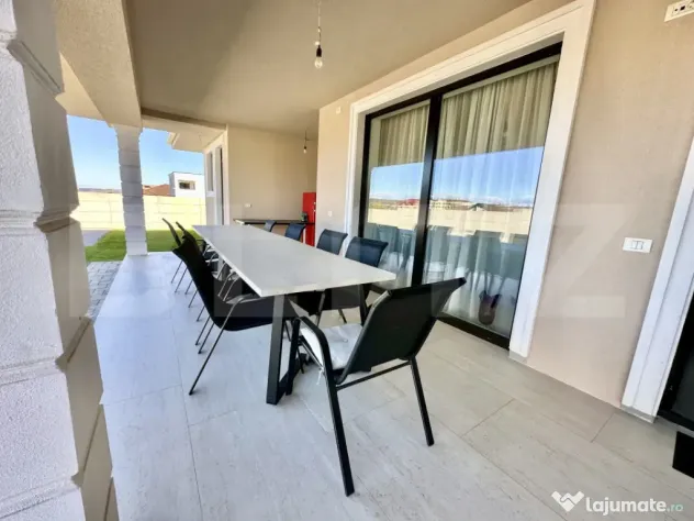 Casa se vinde complet mobilată și utilată, cu mobilier și finisaje de lux, pregătită pentru a fi locuită fără nicio investiție suplimentară. Compartimentarea inteligentă oferă, pe lângă zona de locuit, o cameră tehnică,o uscătorie, ideale pentru organizare și funcționalitate deplină.