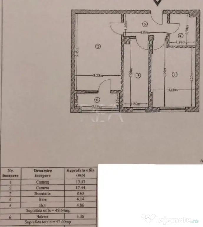 Compartimentare: living, dormitor, bucătărie, baie și balcon.