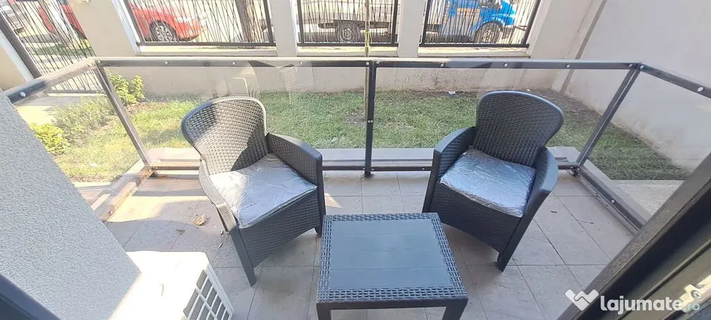 Apartamentul este amplasat la parter, ofera beneficiul de a avea doua terase si de a fi primul locatar.