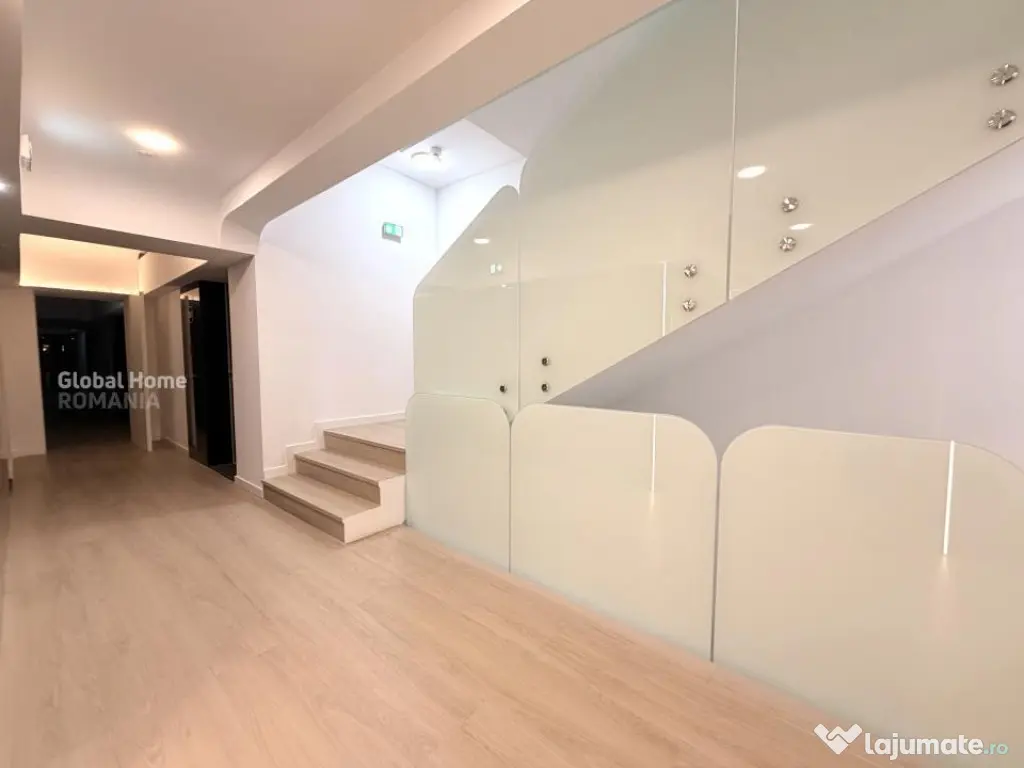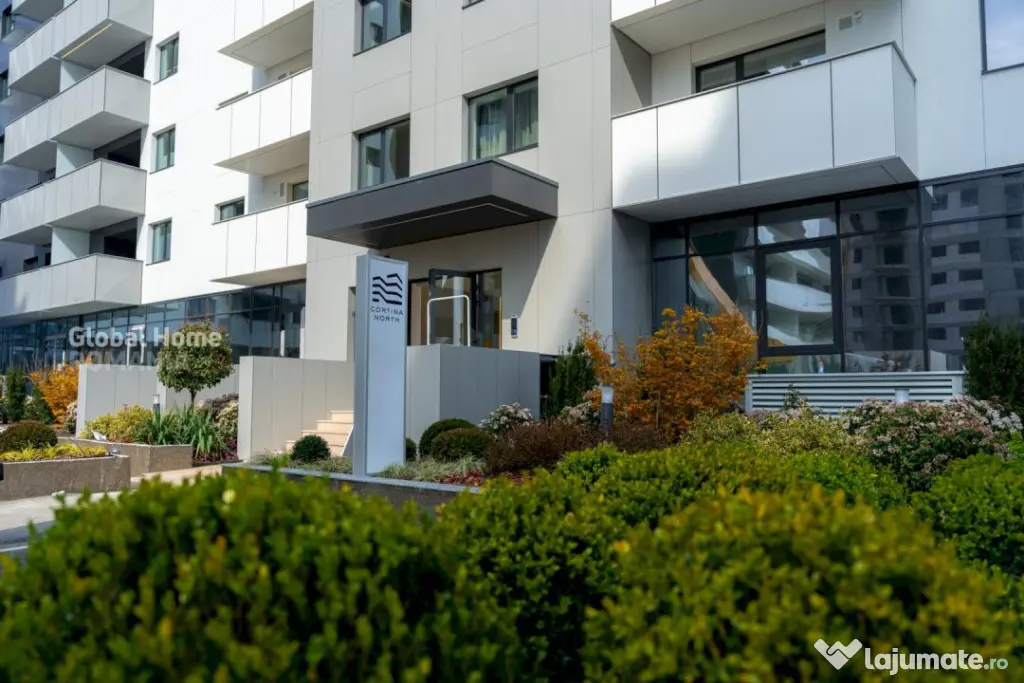 The premium residential complex Cortina North stands out through strategic positioning with secure access via barrier and porter, direct entrance from Bulevardul Pipera. The apartment, located on the 8th floor, benefits from excellent natural light throughout the day and private location. The location offers quick access to: