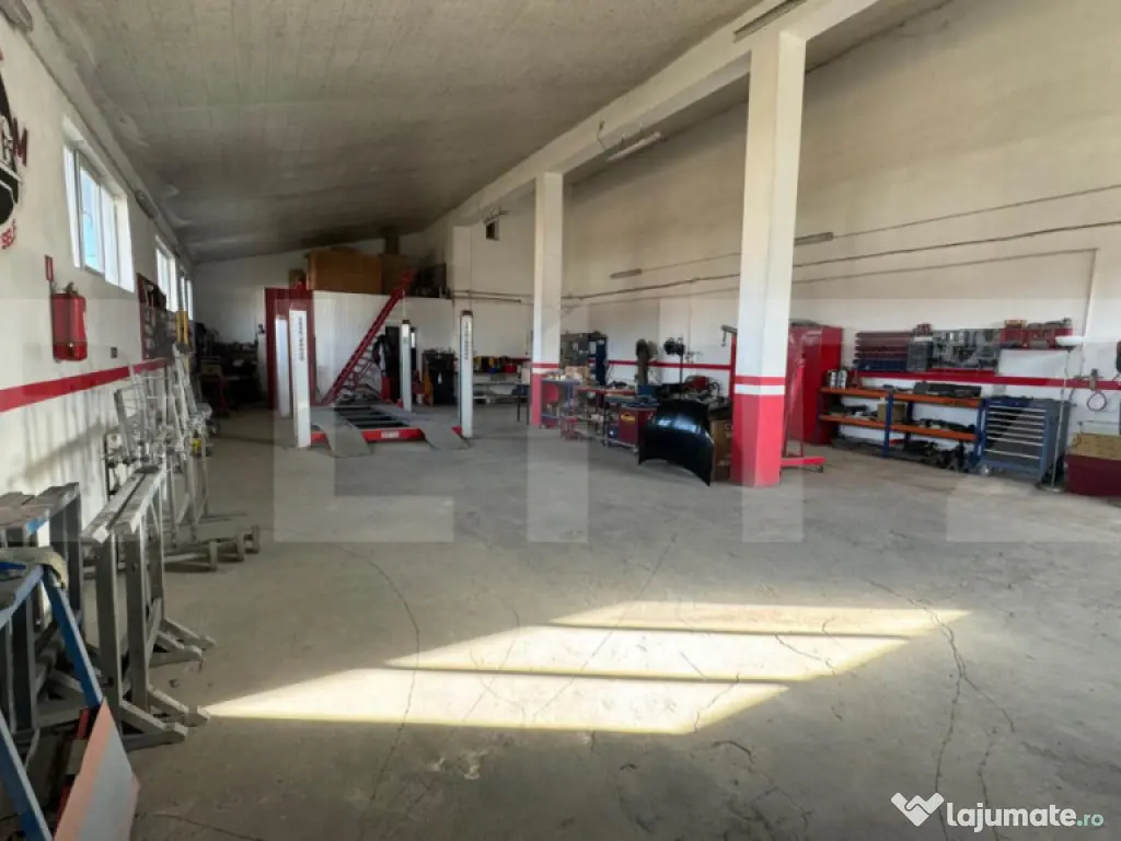 Blitz ofera spre vanzare o hala de 512 mp situata pe un teren de 2800 mp, frontul stradal fiind de 50 m. Hala are destinatie comerciala si este gata echipata pentru a fi utilizata ca service auto. Structura cladirii este din beton si BCA. Terenul este situat chiar la strada principala si are toate utilitatile. In aceeasi cladire este incorporat si un apartament finisat, mobilat si utilat, gata de locuit. Cod ofertă / ID BLITZ: P129397 Id intern: P129397 Suprafaţă totală: 630 m² Suprafaţă birouri: 2 m² An finalizare construcție: 2019 Stadiu construcţie: Finalizat Nr. locuri parcare: 10-20 Tip imobil: Alte tipuri