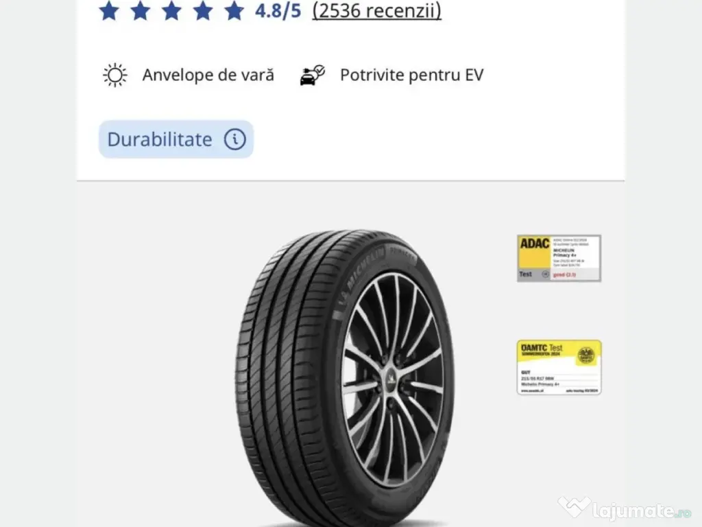 Anvelope de cara Michelin 215/65/17 rulate 100 km, stare foarte buna