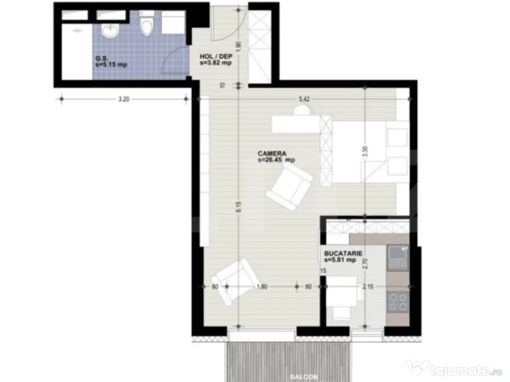 Apartament 1 camera, 41 mp, bucatarie inchisa, zona Iulius M