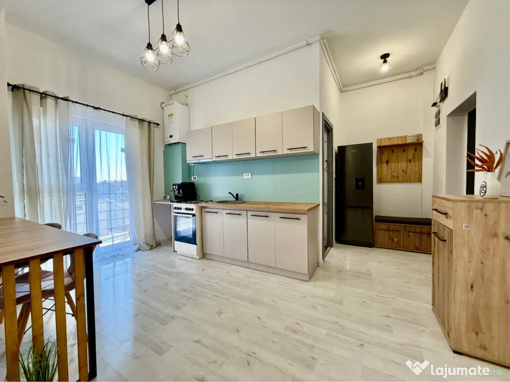 ArtEstate Imobiliare vă propune spre închiriere un apartament cu o cameră, luminos și modern, aflat la prima închiriere, situat într-un bloc nou construit în 2024, la etajul 2. Apartamentul are o suprafață de 50 mp și este compartimentat eficient, fiind compus din living/dormitor cu bucătărie open-space, baie cu duș și geam pentru aerisire și balcon generos pe toată suprafața apartamentului, cu două ieșiri – din bucătărie și din cameră. Locuința este complet mobilată și utilată, toate electrocasnicele și mobilierul fiind noi, iar mobilierul este realizat la comandă. Bucătăria este complet echipată cu toate electrocasnicele necesare pentru un confort optim. Confortul termic este asigurat de centrală termică proprie pe gaz cu încălzire în pardoseală, iar apartamentul dispune și de aer condiționat. Imobilul este amplasat într-o zonă foarte bună, aproape de Piața Spitalului și Spitalul Județean, cu acces rapid către magazine, mijloace de transport și alte puncte de interes ale orașului. Preț: 330 euro/lună – negociabil. Pentru mai multe informații sau pentru programarea unei vizionări, vă rugăm să contactați ArtEstate Imobiliare.