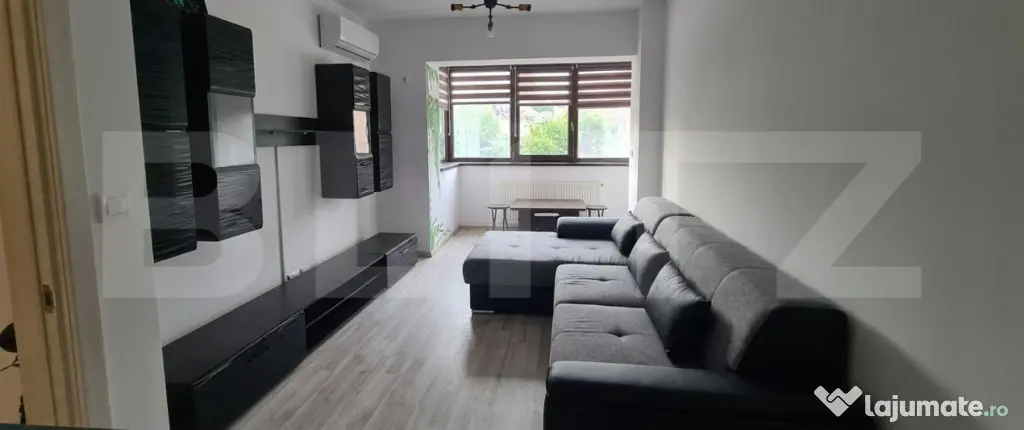 Blitz vă propune spre achiziție în unul dintre cele mai căutate ansambluri rezidențiale din oraș. Vorbim despre un apartament cu 2 camere, situat la etajul 1, care redefinește standardele de locuire prin spațiu și dotări.Proprietatea se distinge printr-o compartimentare inteligentă și extrem de practică: un living generos scăldat în lumină naturală, un dormitor primitor și, punctul forte al acestei locuințe, două băi complet utilate, oferind un plus de confort și intimitate greu de găsit la această categorie de preț. Bucătăria este separată, complet mobilată și utilată cu electrocasnice moderne, fiind gata să satisfacă și cele mai pretențioase cerințe culinare. Totul este completat de un balcon spațios, ideal pentru momentele de relaxare la cafea.Apartamentul se predă complet mobilat și utilat, cu finisaje de înaltă calitate și un design interior contemporan, fiind pregătit să devină 'acasă' din prima zi. Beneficiați de avantajele etajului 1, care asigură acces facil și rapid, totul într-un complex sigur, cu o locație strategică aproape de punctele de interes majore ale orașului.