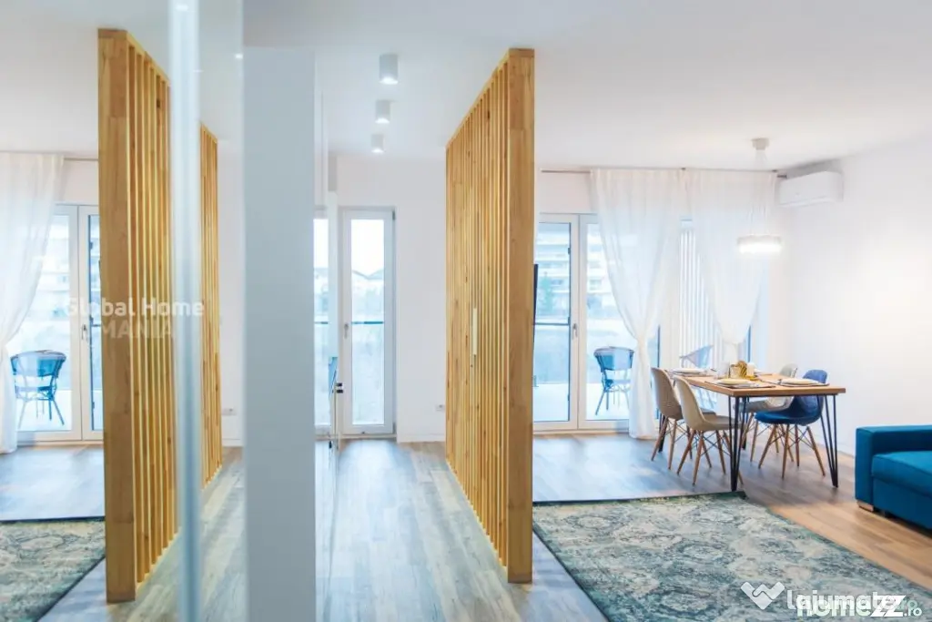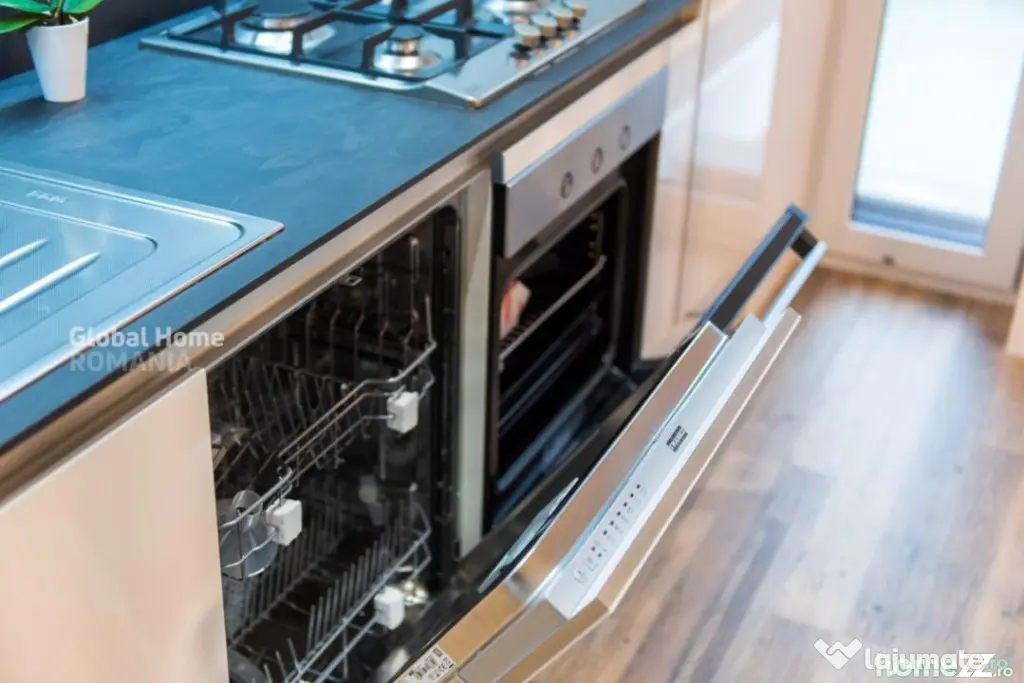 Apartamentul se închiriază complet mobilat și utilat, fiind pregătit pentru mutare imediată. Printre dotările proprietății se numără: încălzire în pardoseală, aer condiționat în fiecare cameră, centrală termică proprie, Smart TV, conexiune Wi-Fi, mașină de spălat vase Franke, mașină de spălat rufe cu uscător Samsung, precum și sistem video interfon.
