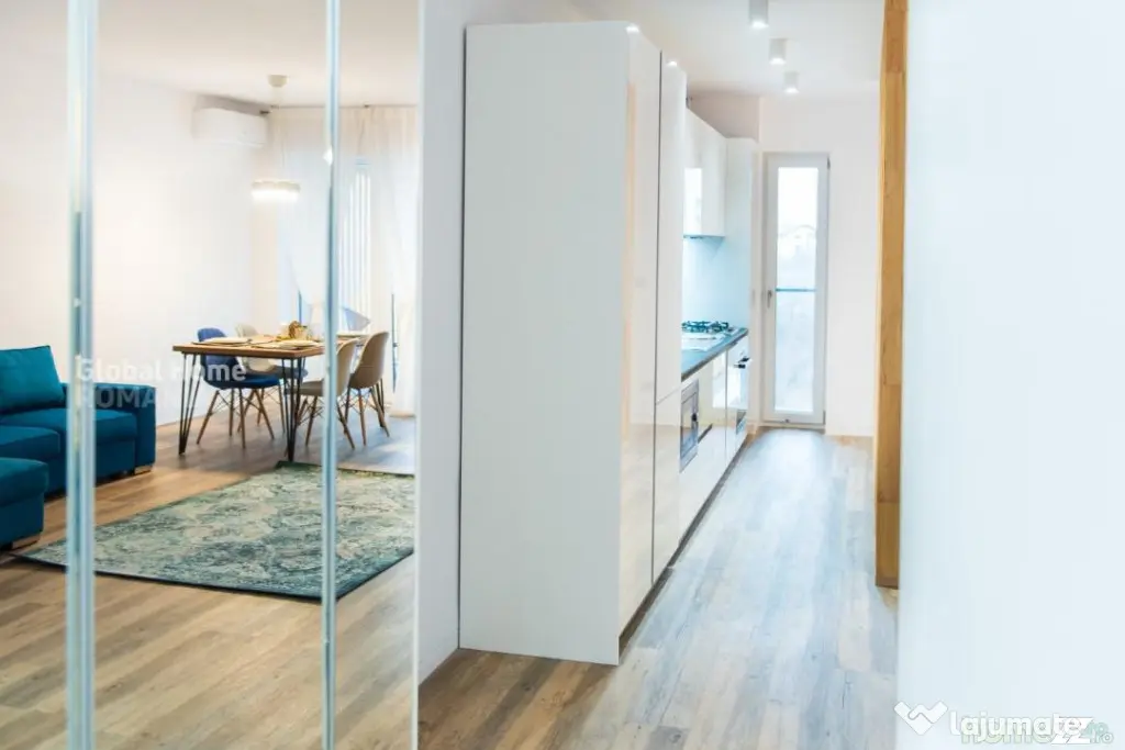 Acest apartament de 2 camere impresionează prin suprafața totală de 90 MP și designul modern, completat de finisaje premium și mobilier atent ales pentru a crea un ambient rafinat și funcțional.