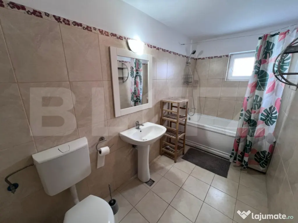 Blitz oferă spre închiriere apartament cu 2 camere, semidecomandat, situat în zona Calea Turzii, Cluj-Napoca Apartamentul este situat la etajul 5 din 8, într-un bloc construit în 2009, dotat cu lift, într-o zonă accesibilă și bine conectată la restul orașului. Locuința beneficiază de balcon cu view superb către oraș, oferind un spațiu plăcut pentru relaxare. Compartimentarea este semidecomandată, fiind compusă din dormitor, living open space cu bucătărie, baie și balcon. Dormitorul este dotat cu pat matrimonial și dulapuri generoase pentru depozitare, oferind confort și funcționalitate. Livingul este amenajat modern și dispune de televizor, iar bucătăria este complet mobilată și utilată cu aragaz, cuptor cu microunde, frigider nou și hotă. Apartamentul beneficiază și de mașină de spălat rufe, fiind pregătit pentru mutare imediată. Baia este spațioasă, dotată cu cadă, duș și geam pentru aerisire naturală, oferind un plus de confort. În prețul chiriei este inclus și un loc de parcare, un avantaj important pentru această zonă. Apartamentul este ideal pentru un cuplu sau o persoană care își dorește o locuință modernă, cu priveliște frumoasă și acces facil către centru. Pentru mai multe detalii sau programarea unei vizionări, vă invităm să ne contactați. Cod ofertă / ID BLITZ: P168616 Id intern: P168616 Confort: 1 Tip imobil: Bloc de apartamente Număr Băi: 1