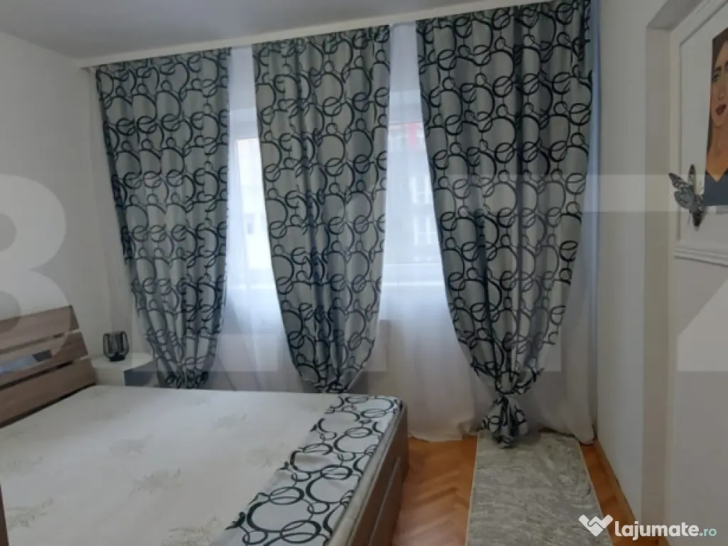 Blitz oferă spre închiriere un apartament cu 2 camere, situat într-o zonă centrală, ideal pentru persoane pretențioase care își doresc confort, liniște și acces rapid către toate punctele de interes ale orașului. Locuința este complet finisată modern, cu un design elegant și funcțional, fiind compusă din living spațios, dormitor luminos, bucătărie complet utilată, baie și balcon. Apartamentul este mobilat și dotat cu toate electrocasnicele necesare (mașină de spălat, frigider, aragaz/plită, cuptor, TV etc.), fiind pregătit pentru mutare imediată. Imobilul beneficiază de: lift și interfon zonă liniștită, ferită de agitația urbană locuri de parcare disponibile în fața blocului Este alegerea ideală pentru cei care apreciază confortul, calitatea și o atmosferă plăcută de locuit. Cod ofertă / ID BLITZ: P168705 Id intern: P168705 Confort: 1 Tip imobil: Bloc de apartamente Număr Băi: 1