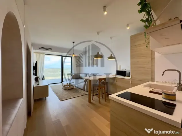 Vă prezentăm spre vânzare un apartament premium cu 2 camere, situat la etajul 6 din 12 în exclusivistul complex rezidențial & aparthotel Vogh Olimp. Apartamentul este complet mobilat și utilat modern, pregătit pentru mutare imediată, oferind o priveliște superbă către pădure și lac (orientare Vest). Poziționarea într-o zonă liniștită, aproape de mare, oferă confort și intimitate.