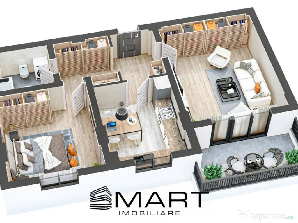 Apartament 2 camere decomandate 60mp + 5mp balcon zona Cires