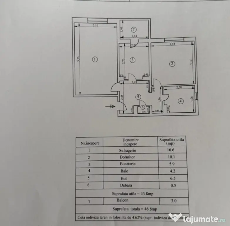 Suprafață utilă (m²)43
