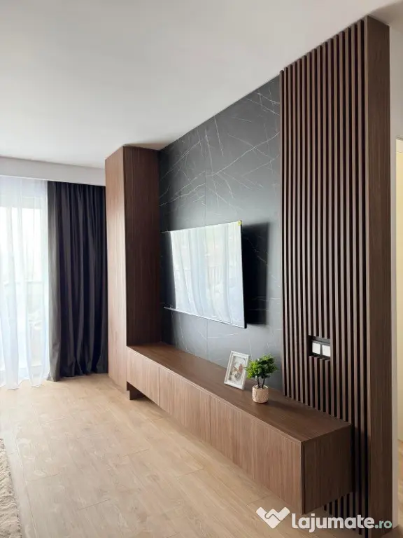 Complet nou incepand de la finisaje, mobilier, bucataria echipata cu electrocasnice: plita, cuptor, hota, masina de spalat vase, frigider, masina de spalat rufe, baie utilata cu obiecte sanitare, decoratiuni, perdele, prize, intrerupatoare; incalzire prin pardoseala, centrala termica.