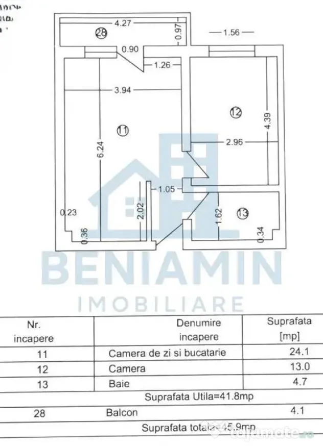 Imobilul are 2 camere semidecomandate, este la etajul 2 din 3 al unui bloc construit in 2020, avand 41.8mp utili si 45.9mp totali cu tot cu balcon, pozitionarea fiind pe Est.