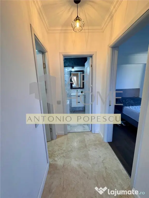 Are o suprafata utila de 65 mp plus balcon in suprafata de 10 mp si dispune de: loc de parcare, interfon, lift nou, usa intrare metalica, usi interioare din MDF, centrala termica proprie, calorifere din otel, tamplarie PVC cu geam tripan, baie placata cu marmura, parchet laminat in camere si marmura pe hol si in bucatarie, vopsea lavabila etc.