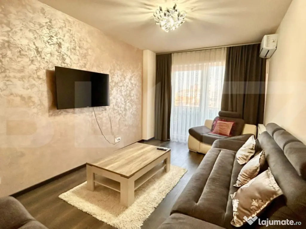 Blitz vă propune spre închiriere apartament spațios cu 2 camere, configurat pentru a oferi un confort maxim și o delimitare clară a funcționalităților. Imobilul este complet mobilat și utilat, fiind pregătit pentru mutare imediată. Compartimentare și Organizare: Bucătărie Închisă . Zonă de zi generoasă, luminoasă, perfectă pentru relaxare sau activități sociale. Un dormitor, dressing, balcon Dotări Tehnice și Electrocasnice: Plită pe inducție, cuptor electric și cuptor cu microunde. Climatizare: Sistem de aer condiționat instalat. Utilități: Mașină de spălat rufe, televizor și conexiune internet de mare viteză. Loc de parcare privat inclus în oferta de închiriere. Acces facil către Prima Shops, stații de transport în comun și facilități urbane. Cod ofertă / ID BLITZ: P167492 Id intern: P167492 Confort: 1 Tip imobil: Bloc de apartamente Număr Băi: 1 Nr. locuri parcare: 1