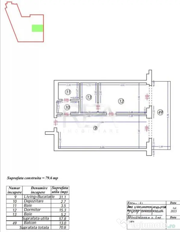 REA Imobiliare va prezinta un apartament de 2 camere, semidecomadat, etaj 2/11, care va fi finalizat in anul 2026. Suprafata totala de 70,8 mp din care suprafata utila de 57,8 mp, suprafata balcon 13 mp. Compartimentare: living + bucatarie, dormitor, spatiu de depozitare, 2 bai, balcon. Sistem de incalzire -> centrala proprie. Transport in comun -> 10 min pana la statiile STB si 12 min pana la statia de metrou Piata Unirii. Pentru detalii si vizionari va rugam sa ne contactati specificand codul de identificare P11077.