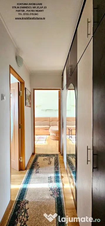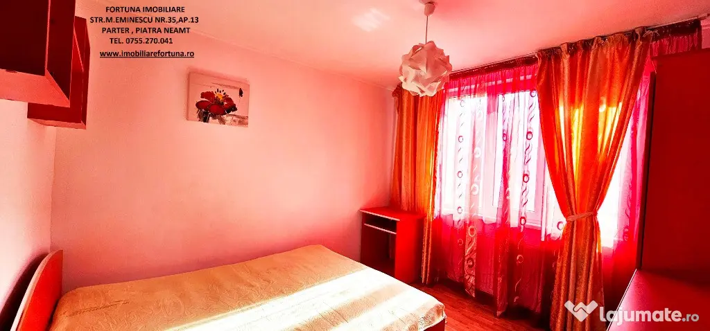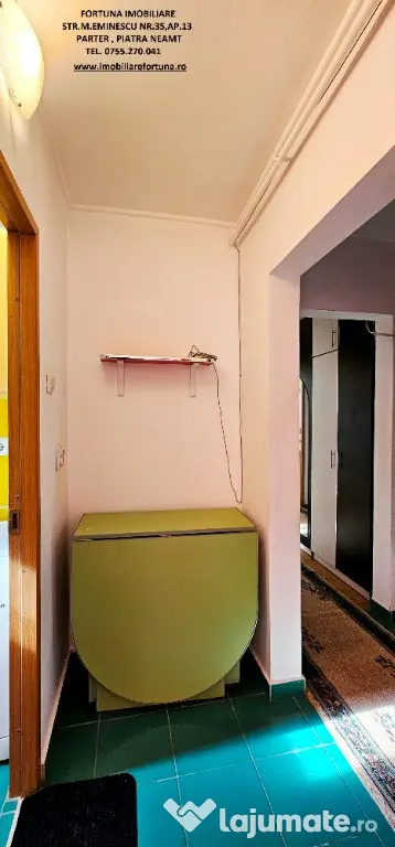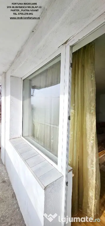 Pentru o prezentare detaliată a acestei oferte, furnizarea unor informații suplimentare referitoare la situația juridică / identificarea imobilului și programarea unei vizionări, vă invităm la sediul nostru, Fortuna Imobiliare, situat in Piatra Neamț, str. M. Eminescu, nr. 35, ap. 13, parter, jud. Neamț, lângă fostul Tribunal, tel. contact 0755.270.041.