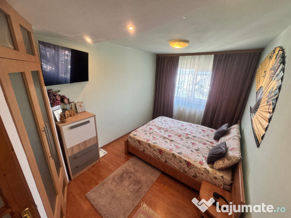 PERSOANA FIZICA - PROPRIETAR fara intermediari, vand apartament cu 3 camere in suprafata totala de 59mp, (56mp utili + balcon), la etajul 9/10 cu lift NOU (panorama deosebita - spre centrul orasului), in cartierul Manastur, str. Mehedinti, blocul de langa intrarea in baza sportiva si de agrement "La Terenuri". Apartamentul are urmatoarea configuratie: un living generos cu bucatarie (open space) si cu iesire pe balcon, dormitor, camera tineret/birou, hol (cu spatii de depozitare inchise), baie si balcon tip logie. Apartamentul este finisat, se vinde complet mobilat si utilat, exact cum apare in fotografiile din anunt. Dispune de centrala termica proprie, usa metalica, gresie-faianta-parchet, usi de interior schimbate, ferestre termopan, logie inchisa cu termopan, sistem de alarma, televiziune/internet prin fibra optica, senzor detectie gaz si electrovalva de siguranta pentru gaz, contoarele pentru apa sunt cu citire de la distanta. Masuta din living este extensibila si reglabila pe inaltime, transformandu-se in masa pentru 6 persoane. Detinem un loc de parcare cu abonament de la primarie. Apartamentul este intretinut si poate fi reamenajat in functie de de nevoile si gustul viitorului proprietar, fiind o baza excelenta, pentru a-ti crea un spatiu exact asa cum iti doresti! Expozitie sudica - la camera de tineret/birou si expozitie estica - la bucatarie, living si dormitor, acestea din urma beneficiaza de o panorama deosebita asupra cartierului si zonei centrale a orasului. Toate actele sunt la zi, fara sarcini/ipoteca/credit pe C.F., cu certificat energetic si relevee avizate. Imobilul dispune de toate facilitatile: in imediata apropiere (Complexul Nora) exista magazine diverse (farmacie, Profi, Mega Image, legume-fructe), doua parking-uri, parc de joaca pentru copii, baza sportiva si de agrement "La terenuri", scoala, gradinita, statie de transport in comun - linia nr.19, langa bloc, iar la distanta de 5 min de mers pe jos exista numeroase alte mijloace de transport in comun (troleibuze, autobuze, tramvai - statia Minerva/zona McDonald Manastur) cu directie pentru toate celelalte cartiere/parti ale orasului, de asemenea padurea Faget se afla in apropierea blocului (250m distanta) - utila pentru persoanele care detin animale de companie, dar si pentru iubitorii de natura si drumetii. La vanzarea acestui apartament NU apare suplimentar plata TVA. Pentru alte informatii si fotografii suplimentare sau daca doriti sa vedeti apartamentul, va rog sa folositi sistemul de mesagerie - raspund prompt! ROG AGENTIILE IMOBILIARE SA NU DERANJEZE! NU DORESC COLABORARE SI NU OFER COMISION!