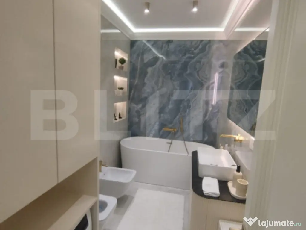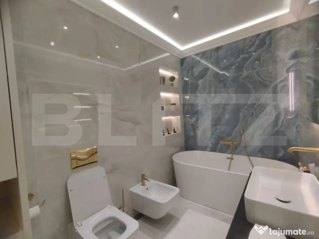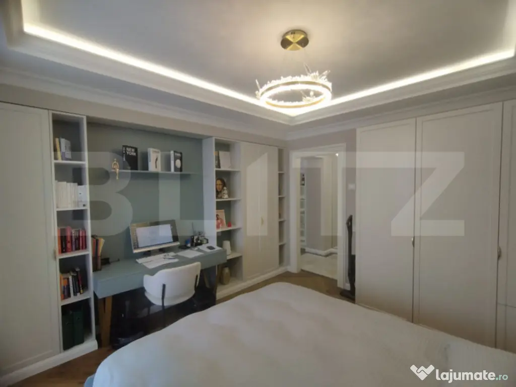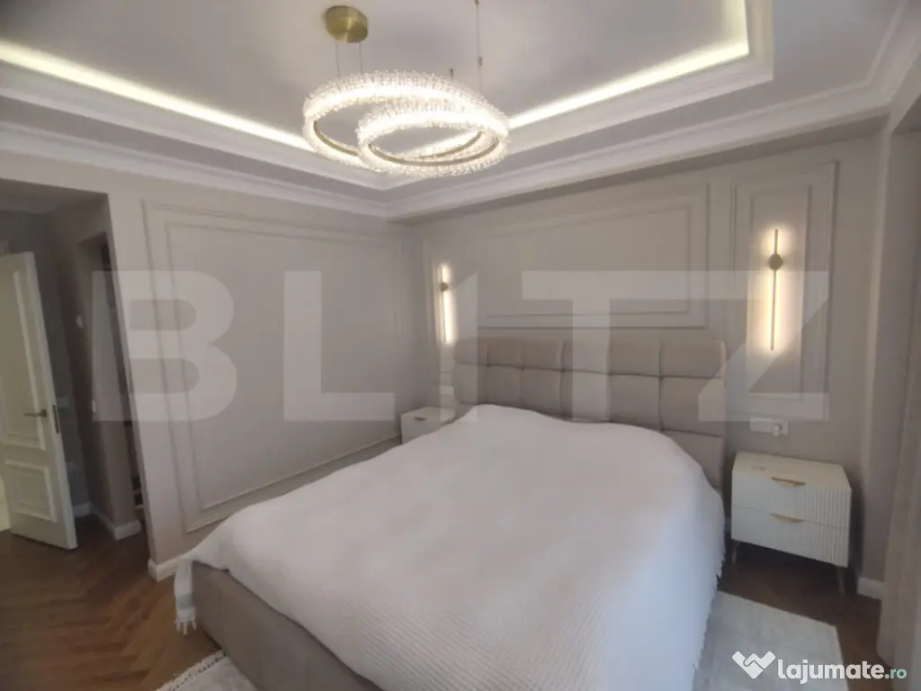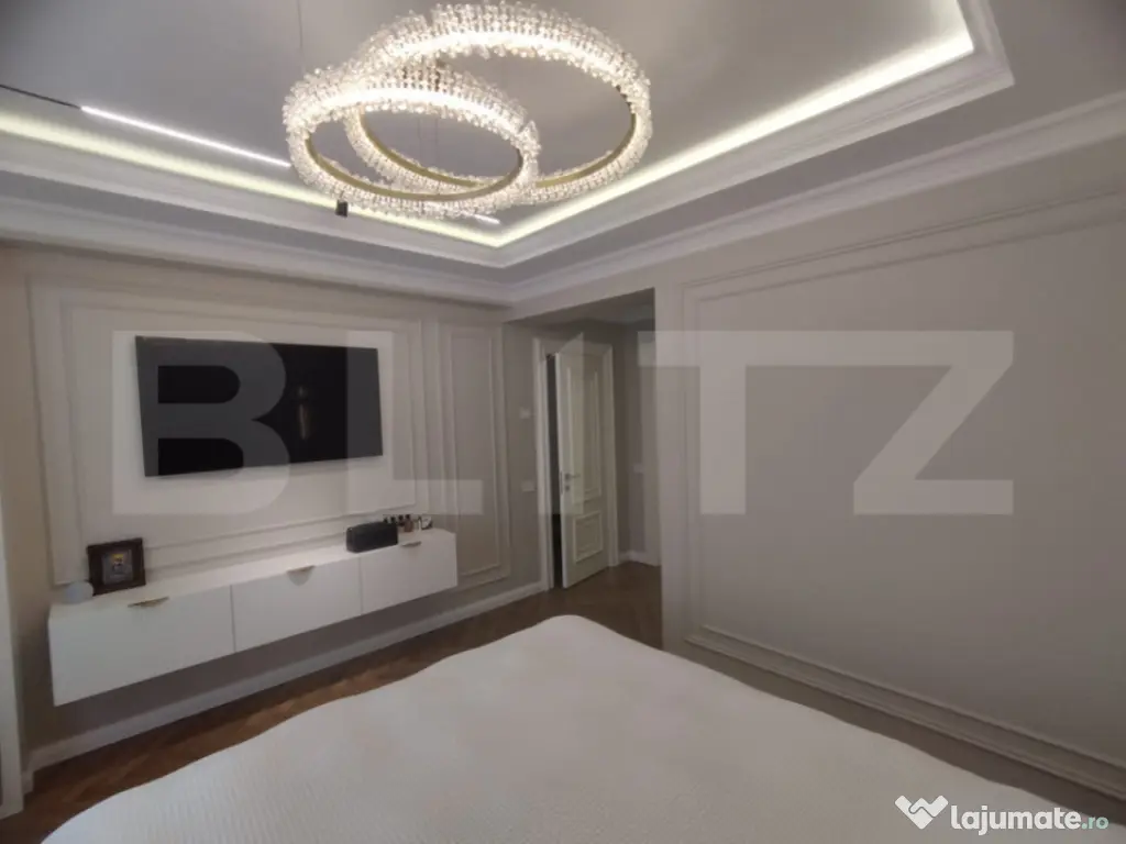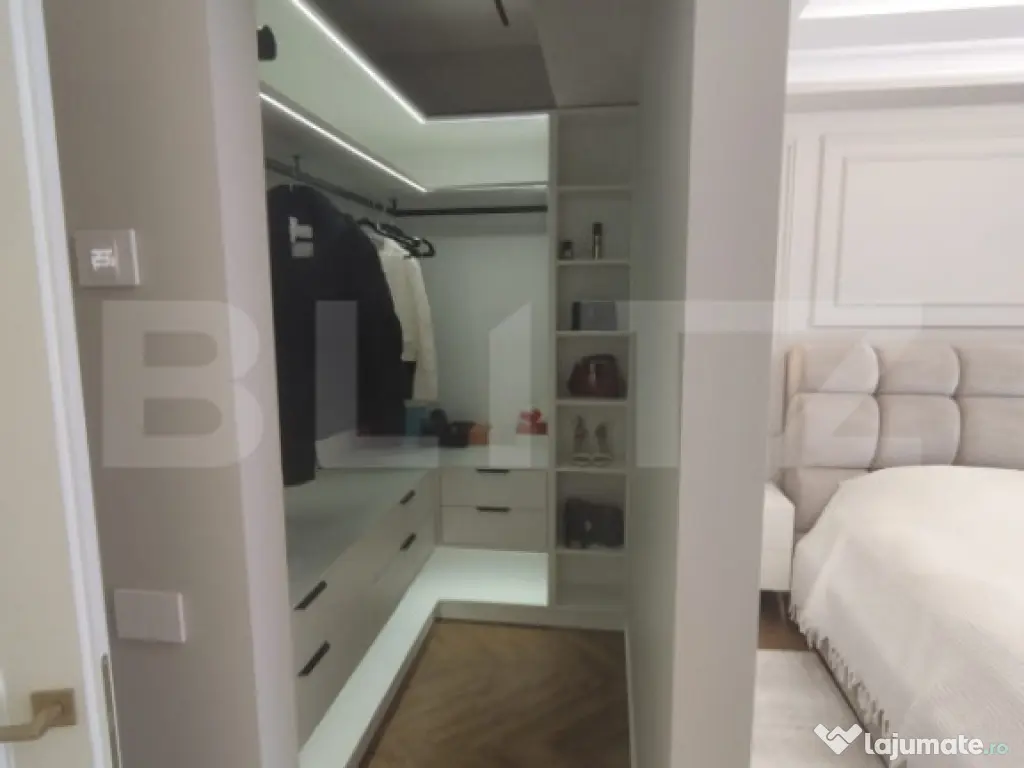 Blitz vă propune un apartament de lux cu 3 camere, având o suprafață generoasă de 100 mp și o priveliște panoramică spectaculoasă, ideal pentru cei care își doresc un stil de viață rafinat, într-un spațiu modern și perfect funcțional. Proprietatea se remarcă prin designul elegant, finisajele premium și atenția deosebită acordată fiecărui detaliu. Apartamentul este compartimentat eficient și oferă un living luminos, două dormitoare spațioase și două băi moderne, completate de un hol generos ce asigură o circulație armonioasă între încăperi. Mobilierul este realizat integral la comandă, fiind perfect adaptat spațiului, iar calitatea materialelor și a execuției reflectă standarde înalte de confort și estetică. Apartamentul este dotat cu obiecte sanitare de calitate superioară Hansgrohe și Villeroy & Boch, care asigură atât un design elegant, cât și durabilitate și confort sporit. În plus, proprietatea beneficiază de electrocasnice moderne incluse, printre care se numără mașina de spălat rufe, mașina de spălat vase, frigiderul, frigiderul pentru vinuri, precum și un sistem de aer condiționat dual inverter, cu funcții de răcire, încălzire și purificare a aerului, oferind un climat interior optim pe tot parcursul anului. Apartamentul beneficiază si de o stație de dedurizare a apei, oferind un plus de confort și calitate în utilizarea zilnică. Confortul este asigurat de încălzirea în pardoseală, împărțită în șase zone, fiecare dotată cu termostat individual, precum și de iluminatul ambiental atent ales, care pune în valoare detaliile de design, finisajele premium și paleta cromatică în tonuri calde. Ferestrele mari permit pătrunderea abundentă a luminii naturale și oferă o priveliște panoramică deosebită, contribuind la o atmosferă elegantă și primitoare. Acest apartament reprezintă o alegere ideală pentru cei care apreciază luxul discret, confortul absolut și funcționalitatea, fiind pregătit pentru mutare imediată. Cod ofertă / ID BLITZ: P161764 Id intern: P161764 Confort: 1 Tip imobil: Bloc de apartamente Număr Băi: 2