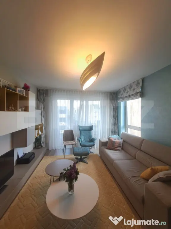 Livingul, complet orientat spre soare, are acces pe un balcon, de 6mp cu orientare sud-vestică, și are ferestre pe două laturi.