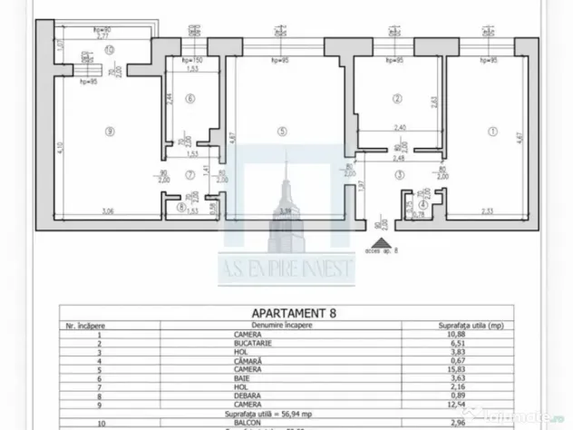 AS EMPIRE INVEST va propune spre vanzare apartament 3 camere semidecomandat, amplasat la etaj 2/3