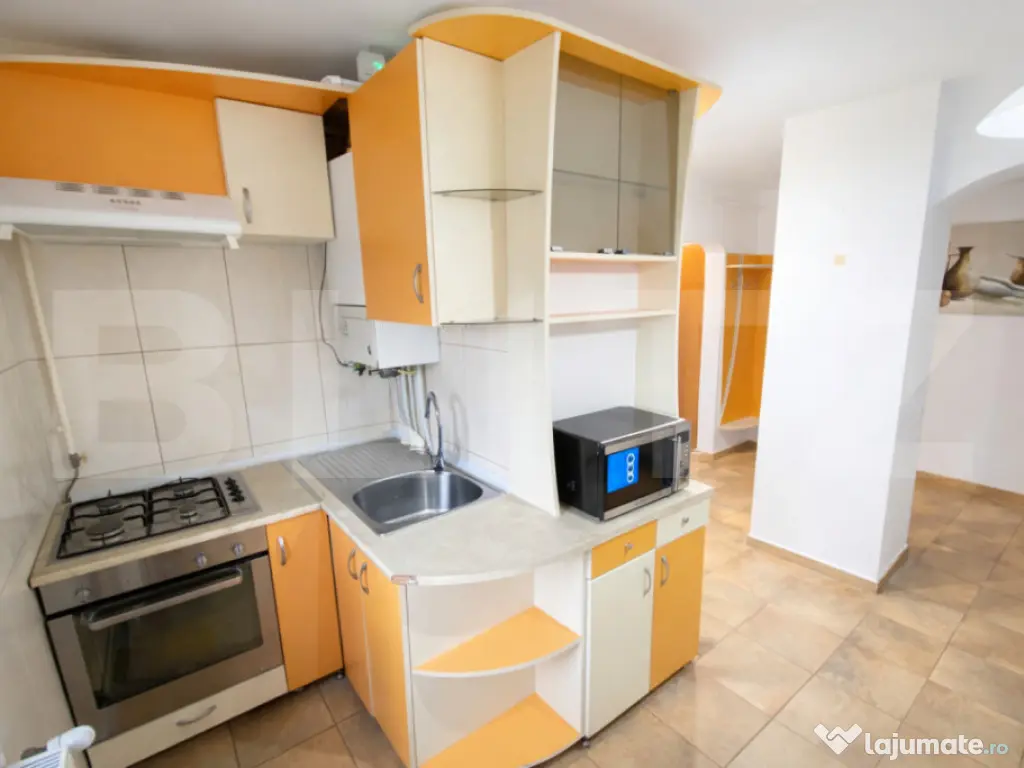 Blitz vă oferă spre vânzare un apartament complet mobilat și utilat, situat în Baciu, zona Regal, într-un imobil bine întreținut, cu regim redus de înălțime. Locație & zonă Baciu – zona Regal În apropiere: Stație de autobuz Magazine (Profi si La Doi Pasi) Biserica Imobil Bloc cu 3 etaje Apartament situat la etajul 1 Bloc izolat termic Interfon Suprafață & orientare 63 mp utili Orientare triplă: Sud – Est – Vest Compartimentare 2 dormitoare Living Bucătărie Baie (cu geam) Balcon Bucătărie & dotări Apartamentul se vinde complet mobilat și utilat, inclusiv: frigider plită cuptor cuptor cu microunde hotă mașină de spălat rufe Confort Centrală termică proprie Încălzire prin calorifere Acte & condiții CF disponibil, curat Se acceptă plata în lei sau euro Se acceptă cash sau credit Predare imediată Pentru mai multe informații și programarea unei vizionări, vă așteptăm cu drag! Cod ofertă / ID BLITZ: P163746 Id intern: P163746 Confort: 1 Tip imobil: Bloc de apartamente Număr Băi: 1