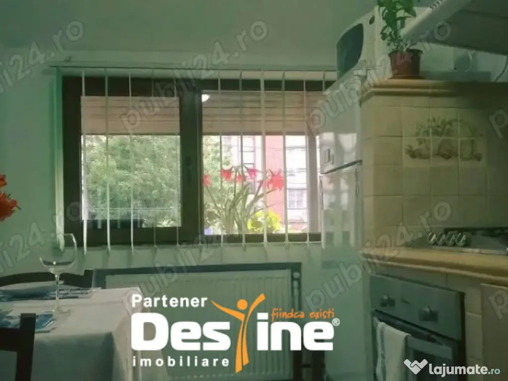 DESTINE IMOBILIARE prezintă spre ÎNCHIRIERE: Apartament 3 camere DECOMANDAT, potrivit pentru 2 studenți. Preț: 1 lună chirie + 1 lună garanție Informații utile: Suprafață utilă 90 mp TERASĂ 80 mp Compartimentare DECOMANDATĂ Etaj 1 din imobil P+1+M Intrare separată din strada principală 3 camere (2 dormitoare + sufragerie) Detalii suplimentare: ~ CENTRALĂ termică proprie pe gaz ~ Contoare individuale gaz și apă ~ Apartament MOBILAT și UTILAT complet ~ Electrocasnice: plită, cuptor, 2 frigidere, cuptor cu microunde, aspirator, mașină de spălat, televizor ~ Cablu TV și internet incluse ~ Finisaje de calitate: gresie, faianță, tâmplărie PVC cu geam termopan ~ Prize și întrerupătoare Bticino ~ Ușă metalică ~ Terasă generoasă, ideală pentru relaxare Transport și acces: ~ STB Cibinului – tramvai 11, 23 (1 minut pietonal) ~ Autobuz 117 – 4 minute pietonal ~ Metrou Eroii Revoluției – 5 minute cu mașina / 15 minute pietonal Facilități în apropiere: ~ Kaufland Ferentari (4 min), Mega Image (2 min), magazine de cartier ~ Centre comerciale: Năsăud, Vulcan Center, Liberty Mall ~ Bănci: BRD, ING ~ Farmacii: Dr. Max, Farmacia Leni ~ Biblioteca Vasile Alecsandri ~ Vulcanizare și spălătorie auto Plesnila Rares Matei: 0723 348 602 COD OFERTA: P4691 Id intern: P4691 Confort: 1 Tip imobil: Casă/Vilă Număr Băi: 1 Comision cumpărător: 50%