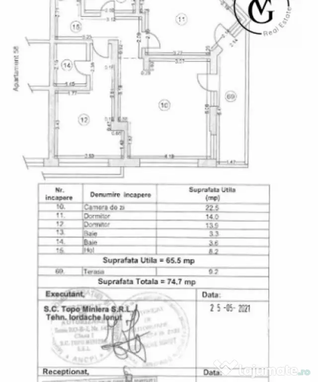 • Compartimentare: bucătărie, living, dormitoare, băi, holuri, balcoane/logii