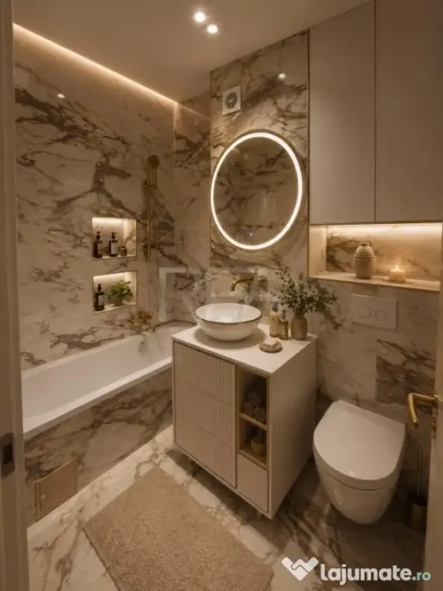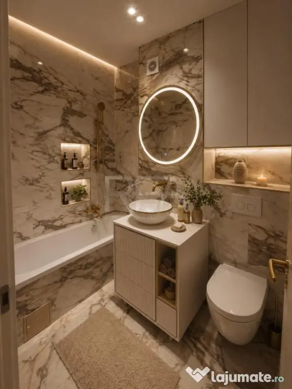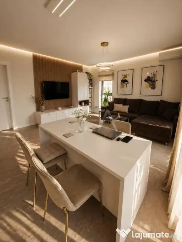 Apartamentul este amenajat cu bun gust, folosind materiale calitative și soluții moderne de iluminat, creând o atmosferă caldă și primitoare. Spațiul este optimizat pentru confort zilnic, dar și pentru un stil de viață activ.
