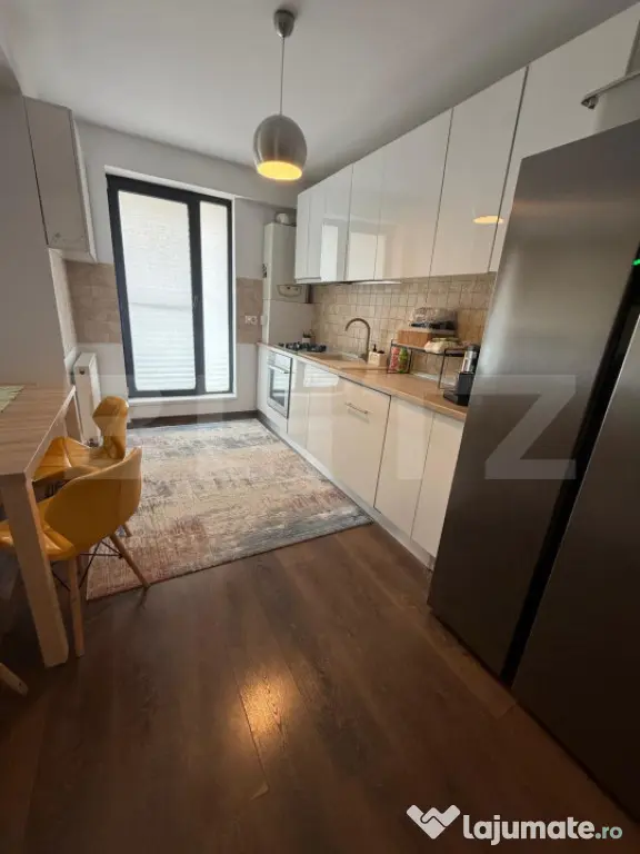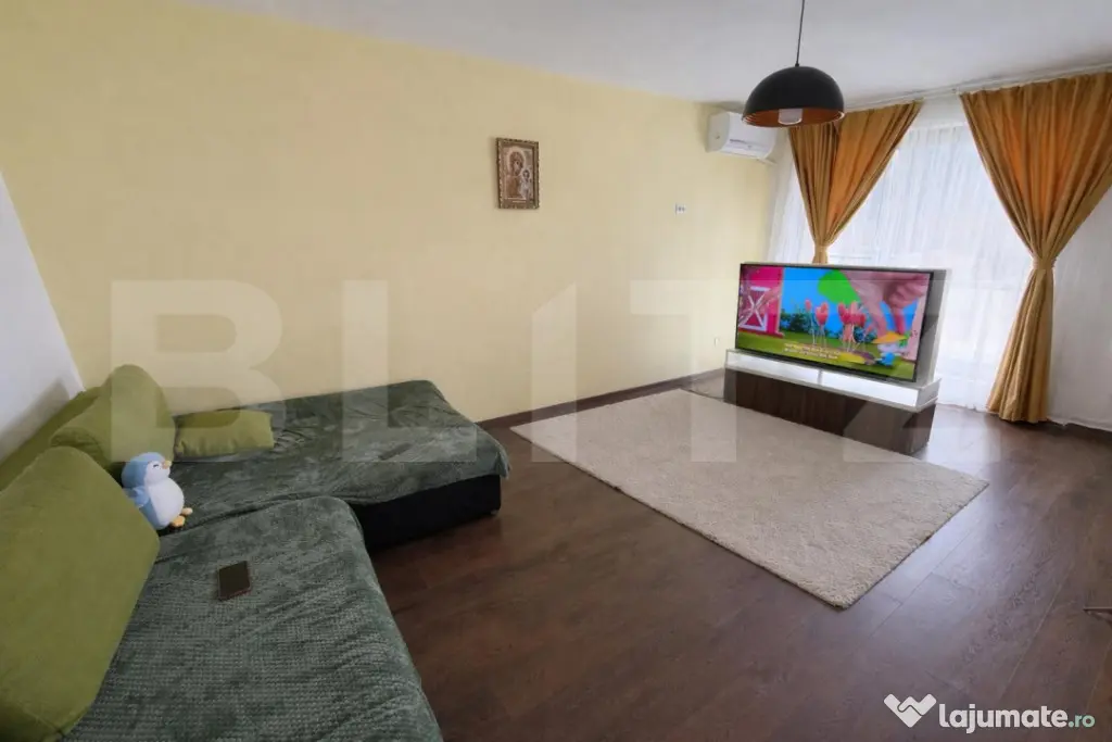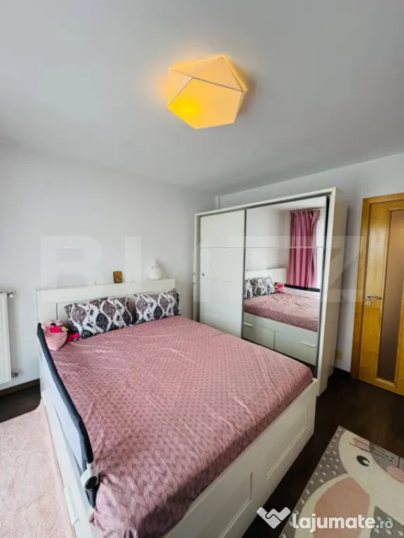 Apartamentul este poziționat pe latura însorită, beneficiind de lumină naturală pe tot parcursul zilei, iar zona este linistita