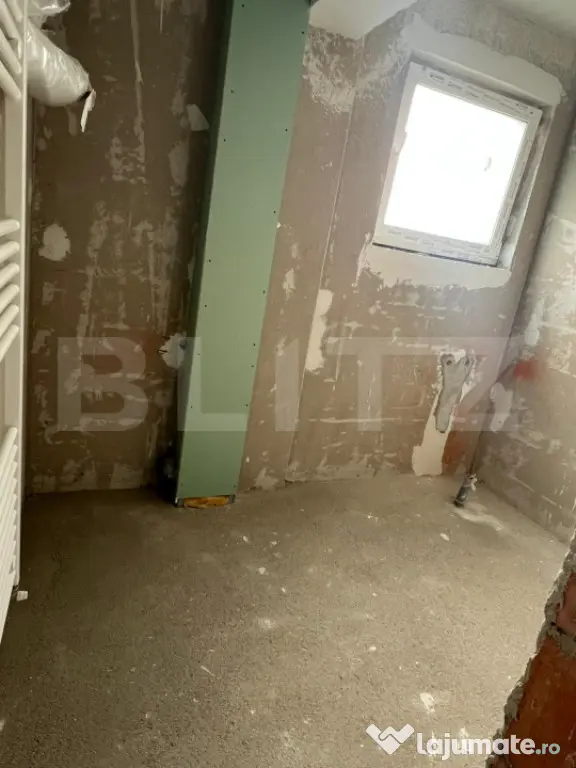 In zona exista supermarketuri, farmacie, clinica medicala, iar distanta fata de mijloacele de transport in comun este de 300 metri. Apartamentul se vinde la stadiul de semifinisat, cu peretii gletuiti, instalatiile sanitare si electrice trase pe pozitie, sapa autonivelanta, usa metalica la intrare, geamuri termopan tripane, 3 sticle 6 camere, centrala propie, incalzirea se face prin calorifere. El este compartimentat astfel, living deschis cu bucataria, 2 dormitoare, baie (cu geam) si balcon. Apartamentul are suprafata de 62,5 mp plus balcon, cu orientare sud-vestica. Apartamentul are cf, se vinde de pe persoana fizica, deci pretul are tva inclus. Separat se poate achizitiona si o parcare exterioara.