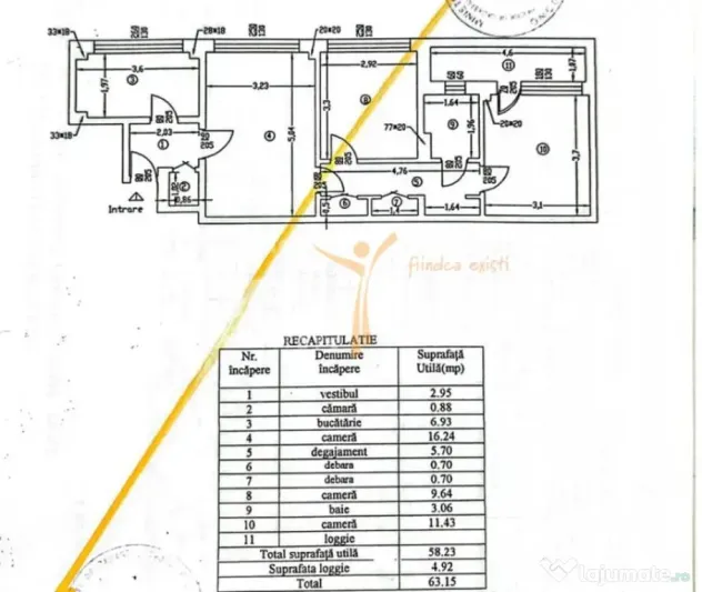 Locuința dispune de o suprafață utilă de 58,23 mp, completată de un balcon de aproximativ 4,92 mp, și oferă un spațiu bine organizat, cu camere generoase și lumină naturală din plin. Un avantaj practic este baia cu aerisire naturală, iar spațiile de depozitare sunt bine integrate.