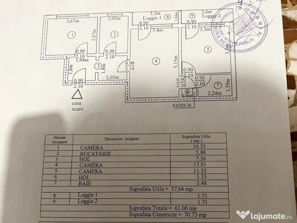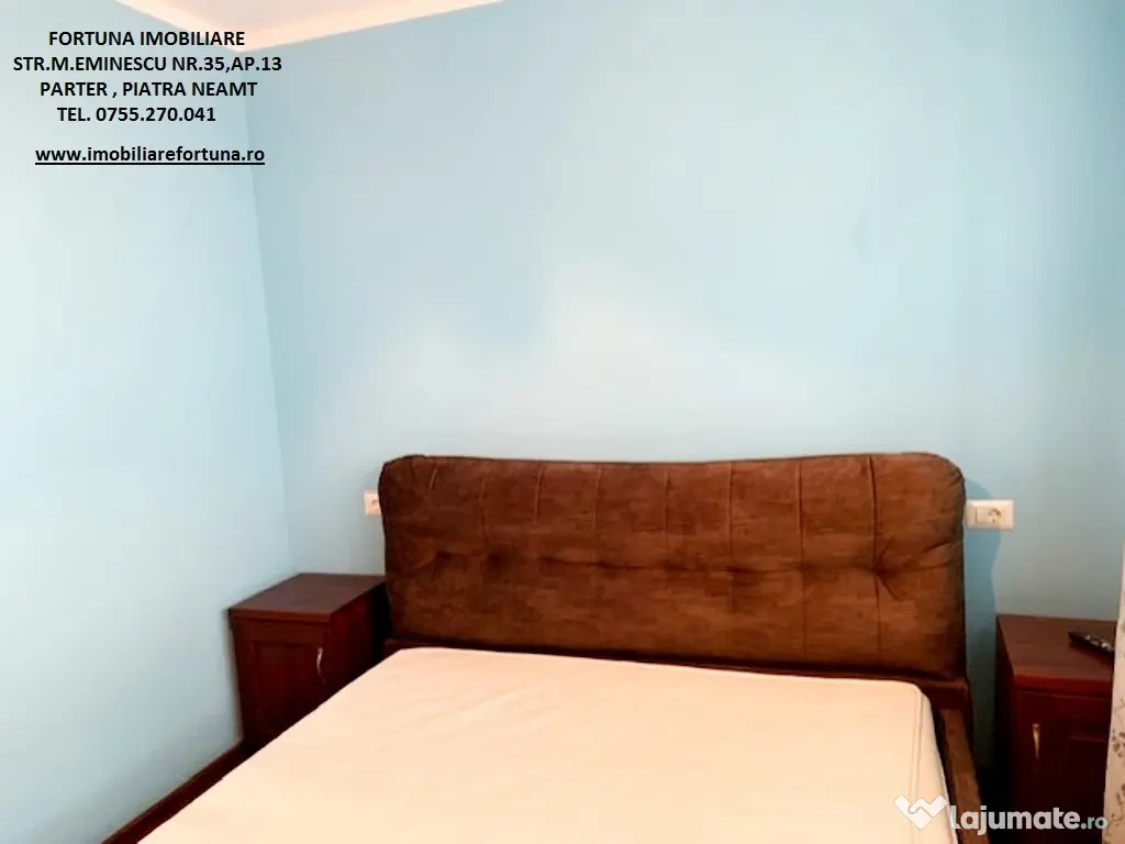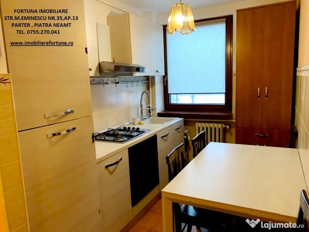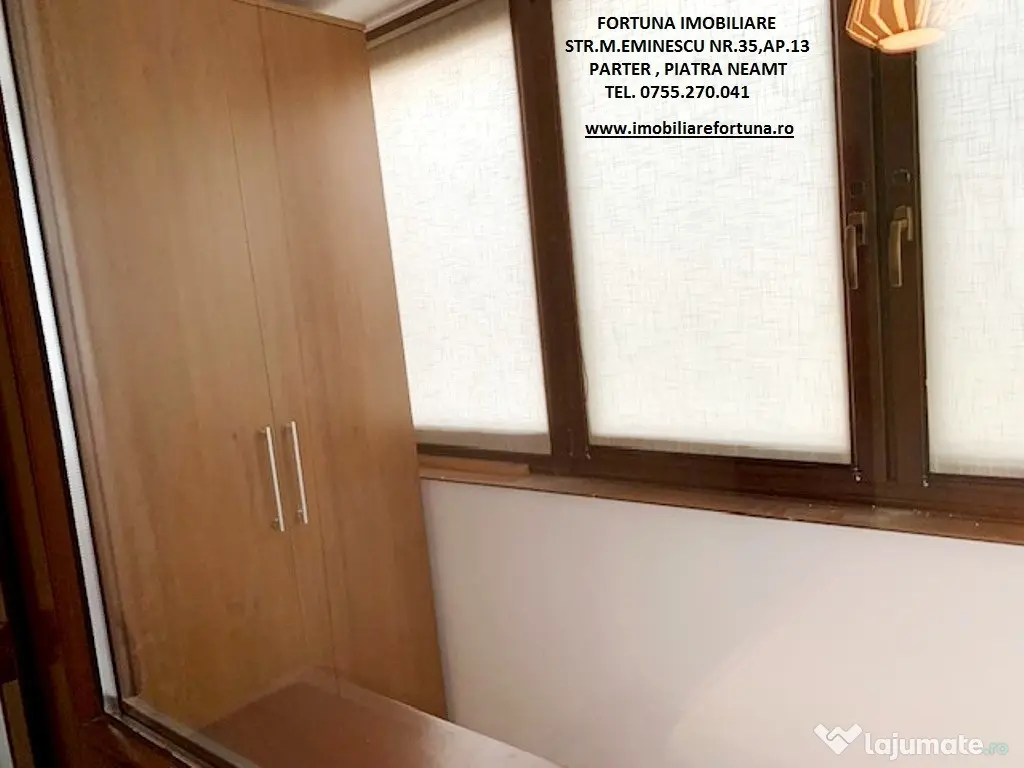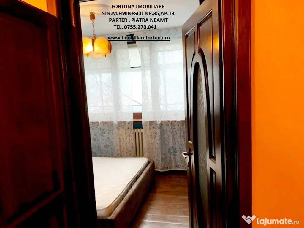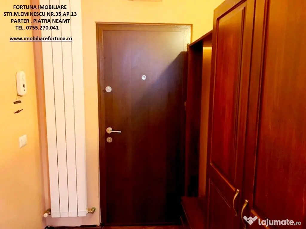 APARTAMENT 3 CAMERE, ECHIPAT COMPLET, CU BOXĂ ȘI LOC DE PARCARE, ULTRACENTRAL - ZONA ȘCOALA NR. 3, 87.500 EURO Oferim spre vânzare apartament cu 3 camere, situat ultracentral, în proximitatea Școlii Nr. 3, la etajul 5 / 8, cu o ușoară accesibilitate către serviciu și principalele obiective de interes relevante pentru rezidenți/chiriași ( instituții culturale, educaționale, centre comerciale etc.). Imobilul, cu suprafata totala de 61,06 mp, suprafata construita de 70,73 mp, este luminos și călduros, cu orientare cardinală EST, fiind prevăzut cu multiple îmbunătățiri: termosistem integral exterior, usa antiefractie, acces controlat prin interfon, centrală termică, termopane in lemn masiv, uși interioare din lemn masiv de tei, dusumea din lemn masiv de stejar, gresie, faianță, instalațiile electrică, termică, sanitară noi ( cea electrică cu împământare, cea termică și toată rețelistica cu montaj îngropat ), Este compus din hol, 2 dormitoare, camera de zi, baie, bucătărie și 2 balcoane mari. Beneficiază de spațiu depozitare / boxă pe casa scării și loc de parcare. Se vinde echipat cu tot necesarul unui trai confortabil, , asa cum este prezentat in fotografii. Preț 87.500 euro. Pentru o prezentare detaliată a acestei oferte, furnizarea unor informații suplimentare referitoare la situația juridică / identificarea imobilului și programarea unei vizionări, vă invităm la sediul nostru, Fortuna Imobiliare, situat pe str. M. Eminescu, nr. 35, ap. 13, parter, lângă fostul Tribunal, tel. contact 0755.270.041. Your comfort is our priority ! Oferta noastră completă o găsiți aici: https://imobiliarefortuna.ro/ Confort: 1 Tip imobil: Bloc de apartamente