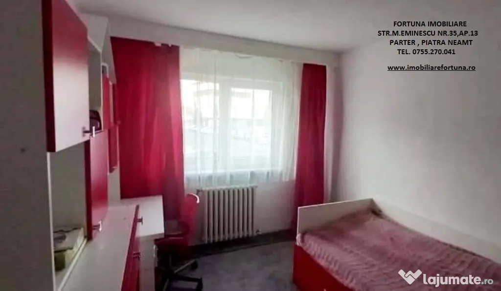 Pentru o prezentare detaliată a acestei oferte, furnizarea unor informații suplimentare referitoare la situația juridică / identificarea imobilului și programarea unei vizionări, vă invităm la sediul nostru, Fortuna Imobiliare, situat pe str. M. Eminescu, nr. 35, ap. 13, parter, lângă fostul Tribunal, tel. contact 0755.270.041.