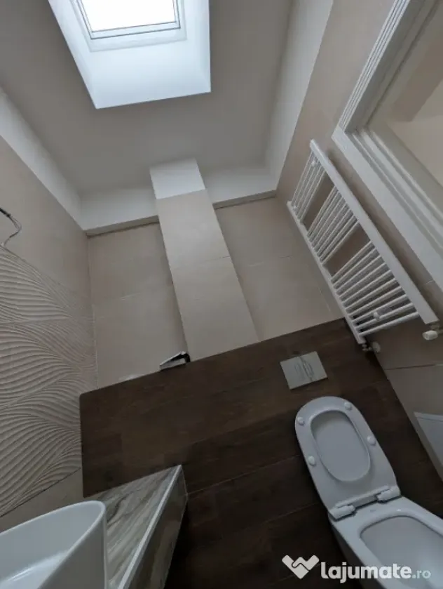 2 dormitoare, living, bucătărie open space, 2 bai cu luminatoare in tavan , terase.