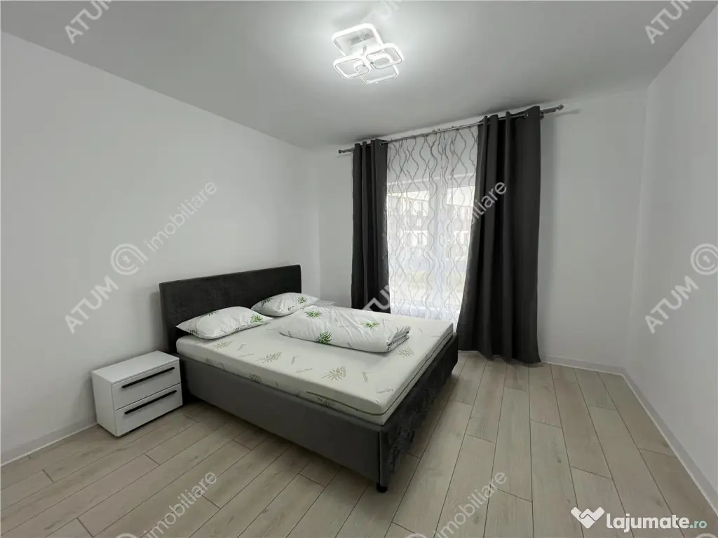 Comision 0! De vanzare apartament finisat la cheie cu 3 camere decomandate cu suprafata 82 mp totali, pozitionat la etajul intermediar 1 al unui imobil constructie noua cu regim redus de inaltime Parter 3 Etaje si doar 3 apartamente pe palier, situat in zona Doamna Stanca din Sibiu. Locuinta are 61,20 mp utili si dispune de o compartimentare excelenta care poate satisface dorintele oricarei familii, living open space cu bucataria in suprafata de 27.20 mp, dormitor de 15.30 si un al doilea dormitor 12.10 mp si baia de 6.60 mp. Separat de suprafata utila detine un balcon cu suprafata de 7.80 mp avand iesire din living si dormitor. Imobilul din care face parte locuinta este construit pe structura de cadre din beton cu stalpi de sustinere din beton armat si caramida, acesta beneficiind de acoperis din tigla marca Bramac, izolatie termica exterioara de 10 cm cu densitatea EPS 80 acoperita cu tencuiala decorativa. In valoarea de achizitie este inclus si un loc de parcare amenajat, delimitat si inscriptionat, pozitionat in fata imobilului. Locuinta se va preda la stadiul de alb cu urmatoarele finisaje: - Usa metalica de acces; - Interfon montat pe pozitie; - Pereti interiori din caramida, tencuiti ( tencuiala pe baza de var-ciment ), doua maini de glet si zugraviti in vopsea lavabila alba; -Prize si intrerupatoare funtionale montate pe pozitie; - Tamplarie PVC marca Salamander cu 5 camere si 3 foi de sticla, glafuri exterioare de aluminiu si PVC interior; - Centrala proprie pe gaz marca Bosch in condensare cu senzor de gaz si incalzire in pardoseala; - Racorduri apa-canal in bucatarie si bai - Racord gaz metan in bucatarie - Instalatii electrice trase pe pozitie cu tablou general si sigurante pentru consumatorii de putere, instalatii pentru TV si internet trase pe pozitie; - Contorizari individuale si contoare montate pentru gaz, curent si apa. Ansamblul rezidential va avea aleile pietonale, auto si spatiile verzi vor fi complet amenjate, locul de joaca pentru copii prevazut cu nisip, topogane si leagane, locurile de parcare special amenajate, delimitate, iluminate si inscripionate ca atare. Casa scarii se va preda complet amenajata cu: pereti tencuiti si zugraviti cu vopsea lavabila, plafoniere cu senzor de miscare, pardoseala placata cu gresie antiderapanta, interfon la intrare, usa de acces din PVC cu inchidere electromagnetica. Valoarea apartamentului la plata unui avans de 15% este de 122.000 euro TVA de 21% inclus. ID intern: 2859. Confort: 1 Tip imobil: Bloc de apartamente Număr Băi: 1 Posibilitate parcare: Da Nr. locuri parcare: 1