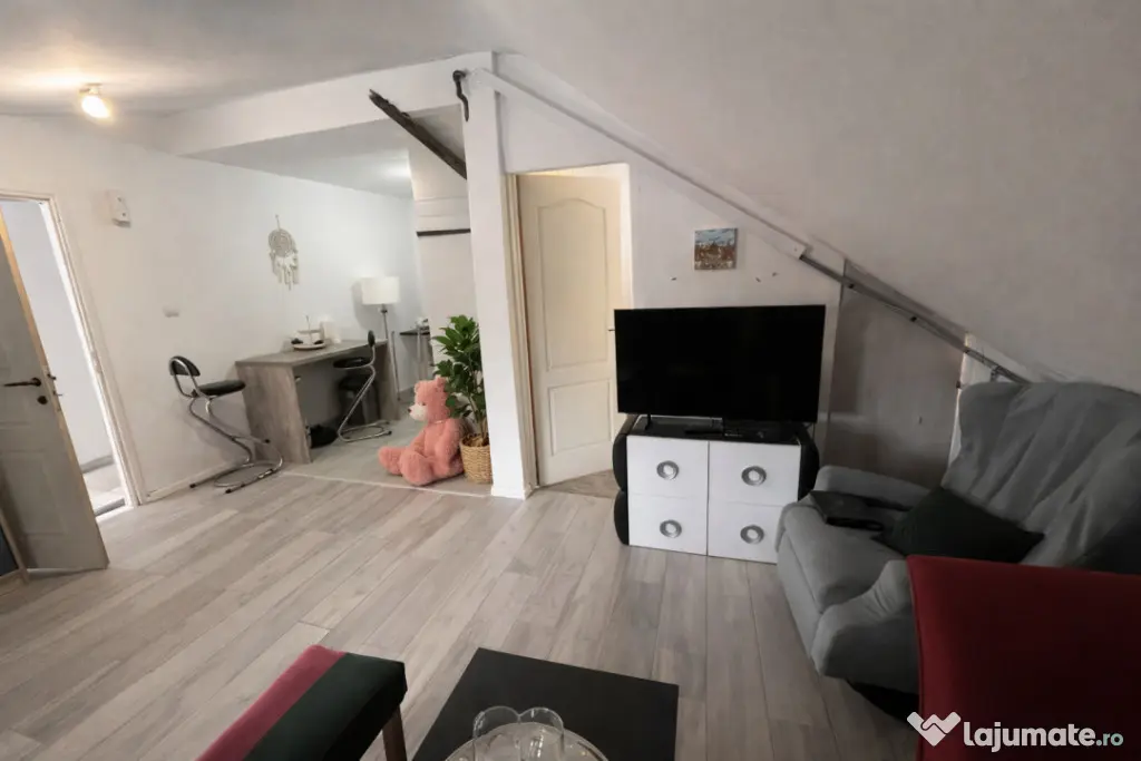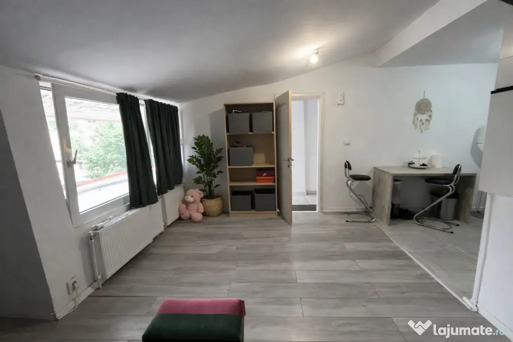Se oferă spre închiriere un apartament cochet, cu o cameră , semidecomandat, situat în zona Lunei, la etajul 1 al unei case. Locuințan are o suprafață de 42 mp și este compartimentată astfel: • dormitor spațios • sufragerie open-space cu bucătăria • baie Apartamentul dispune de intrare separată și contorizare individuală, fiind complet independent de restul imobilului. Încălzirea se face prin centrală pe imobil, asigurând confort pe tot parcursul anului. Ideal pentru un cuplu sau o persoană singură care caută liniște și intimitate într-o zonă bine poziționată. ????Pentru mai multe detalii și vizionări, nu ezitați să mă contactați!!