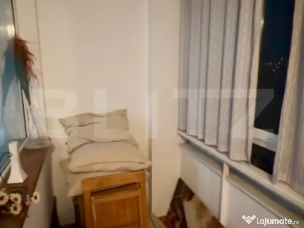 Blitz vă propune spre vânzare un apartament cu 2 camere semi-decomandat, situat într-o zonă extrem de bine conectată a cartierului Nicolina. Proprietatea se află la etajul 6 din 10, al unui imobil cu lift. ???? Caracteristici principale: Suprafață utilă: 45.22 mp Suprafață totală: 52.29 mp Compartimentare: semi-decomandat Etaj: 6 / 10 An construcție: 1970 Stare: bună (fără vicii ascunse, mirosuri, mucegai sau infiltratii) Mobilare: complet mobilat, gata de locuit Încălzire: centrală proprie Balcon: un balcon de 7.1 mp închis ???? Descriere Apartamentul este compus dintr-un living spațios cu dressing si acces in balcon spatios de 7 mp, dormitor generos, bucătărie cu acces spre balcon, baie cu geam (aerisire naturală) și 2 holuri cu spații de depozitare. Mobilierul este modest, dar in stare bună, fiind ideal atât pentru locuire proprie fără investiitii urgente, cât și pentru investiție (se poate preda cu tot cu chirias). Locuința beneficiază de multă lumină naturală. Imobilul este solid din structura de beton la exterior si posibilitate de recompartimentare la interior, cu vecini liniștiți și proximitate directă la toate punctele de interes. ???? Localizare & Avantaje zonă ✔ acces direct la mijloacele de transport în comun ✔ magazine, supermarketuri, farmacii, piete, statii peco, și bănci în apropiere ✔ școli, grădinițe, zone comerciale la 2 minute ✔ conexiune rapidă către Centru și restul orașului ???? Ideal pentru: ✔cupluri sau familii mici ✔investiție pentru închiriere (zona are cerere ridicată si se poate preda direct cu chirias) ✔persoane care caută o locuință mobilată, gata de mutat Pentru informații suplimentare sau programarea unei vizionări, nu ezitati sa ne contactati! Cod ofertă / ID BLITZ: P159989 Id intern: P159989 Confort: 2 Tip imobil: Bloc de apartamente Număr Băi: 1