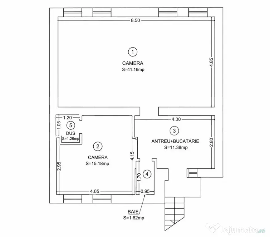 Dispune de utilități complete, apă, gaz și energie electrică. Accesul se face din curte interioară, ceea ce oferă mai multă liniște.