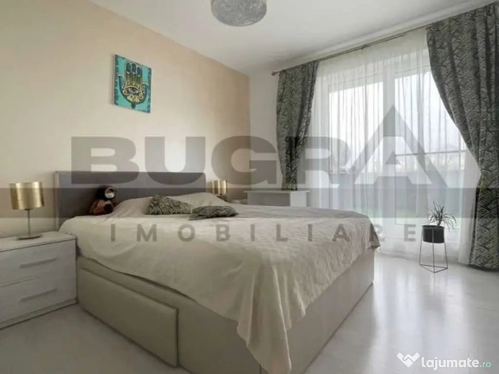 Bugra Imobiliare va ofera spre vanzare un apartament de 2 camere, mobilat si utilat modern, cu o suprafata utila de 53mp, dotat cu finisaje de calitate si electrocasnice moderne, din care amintim masina de spalat vase, uscator de rufe Samsung, incalzire in pardoseala + acces la terasa proprie de 35mp. Apartamentul are o compartimentare moderna, gandita astfel: living, bucatarie separata, dormitor, baie + terasa proprie generoasa Imobilul dispune de acces securizat si se afla in apropierea mijloacelor de transport in comun, sala de fitness Revo la 1 minut de mers pe jos, supermarketuri. Proprietatea se afla la parterul inalt al unui imobil nou construit de 8 etaje, orientare vestica cu vedere catre Calea Turzii, oferind deplina intimitate si confort. Exista posibilitatea achizitionarii unui loc de parcare contra sumei de 15.000 euro. Disponibil imediat, va asteptam la vizionare! Confort: 1 Tip imobil: Bloc de apartamente Număr Băi: 1 Posibilitate parcare: Da Nr. locuri parcare: 1