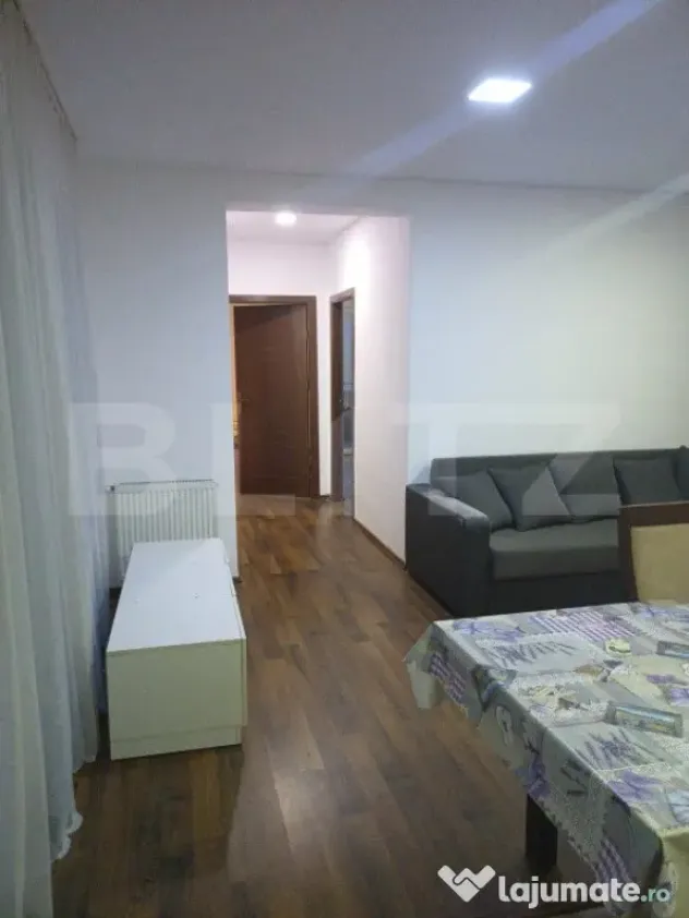 Blitz va propune spre vanzare apartament cu 3 camere, din zona Sesul de Sus, din Floresti. Apartamentul are o suprafata utila de 68 mp si este situat intr-un imobil nou, la etajul 3 din 3. Compartimentarea se prezinta astfel: bucataria open space cu living, doua holuri, 2 dormitoare, o baiecu geam, un balcon, o terasa de 12 mp. Se vinde la stadiul de mobilat si utilat,la cerere se poate vinde si nemobilat. Baia este utilata, apartamentul prezinta centrala termica si calorifere, geamuri termopan cu tamplarie PVC si usa metalica antiefractie la intrare. Se poate achizitiona si un loc de parcare subteran, la cerere.