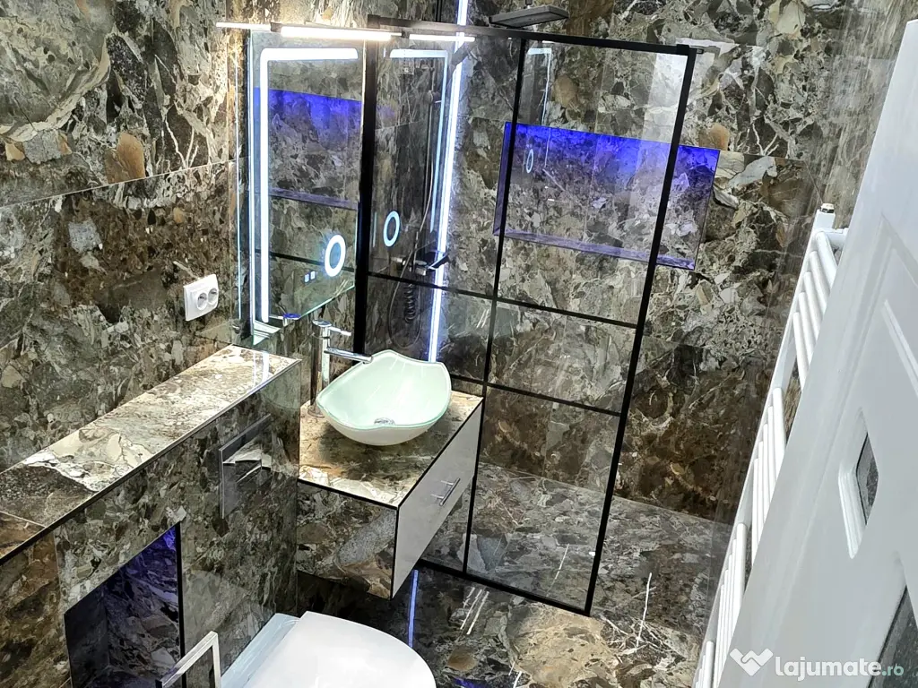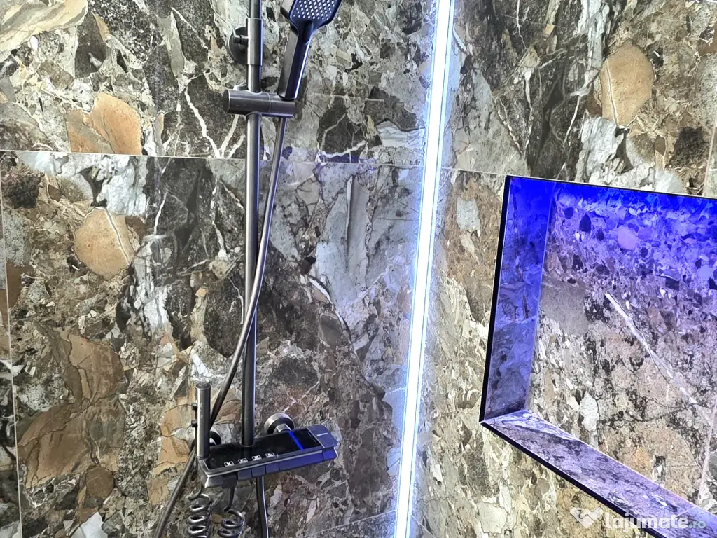 -Baia impresioneaza printr-un design modern si indraznet, finisata integral cu placi ceramice tip marmura in nuante naturale, care creeaza un efect vizual elegant si continuu.