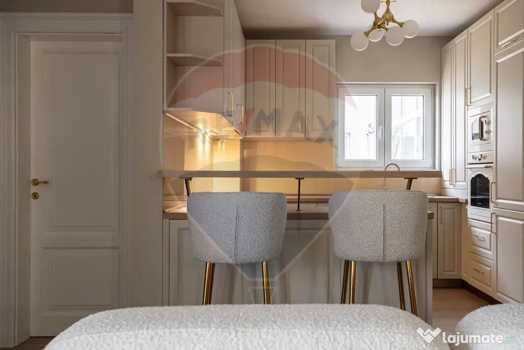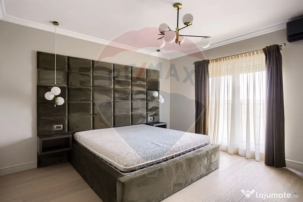Apartamentul dispune de aer condiționat, încălzire prin pardoseală, centrală proprie, loc de parcare privat, mobilier de lux, bucătărie modernă complet echipată, ferestre PVC cu geamuri termopan, precum și acces la internet și TV, oferind confort și funcționalitate la cele mai înalte standarde.