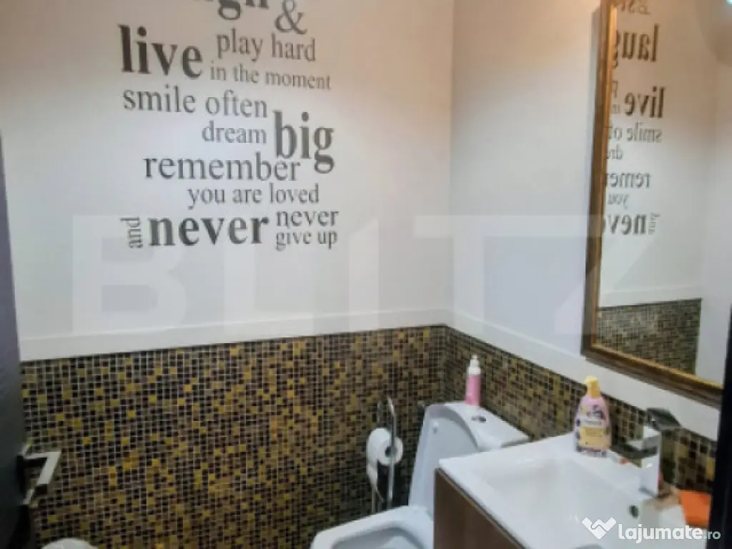 Blitz vă propune spre vânzare un apartament situat la parterul unei case , situat într-o zonă de case foarte liniștită. Este varianta ideală pentru cineva care caută confortul unui apartament modern, dar vrea beneficiul unei grădini private. Apartamentul are o suprafață utilă de cca 100mp și dispune de o grădină privată de 156 mp, deja amenajată cu gazon, pomi fructiferi și vegetație matură. Configurația interioară include un living de tip open-space cu bucătărie , două dormitoare, o baie, un hol și o camera dedicata pentru dressing. Proprietatea se vinde complet mobilată și utilată, fiind pregătită pentru mutare imediată. Bucătăria este echipată cu electrocasnice de calitate, precum frigider Samsung, mașină de spălat vase Bosch, plită Electrolux și cuptor Hotpoint. Confortul termic este asigurat de construcția din cărămidă cu izolație exterioară de 10 cm, geamuri termopan, calorifere si centrala termica Ferroli . Un avantaj major al acestei proprietăți este includerea a două locuri de parcare proprii. Localizarea ofera o comunitate selectă de vecini și un regim de înălțime mic în întreaga zonă. Status Juridic: Extras CF la zi , certificat fiscal disponibil. Un avantaj major îl reprezintă intimitatea oferită de accesul separat și de curtea proprie, fără scări interioare. Cod ofertă / ID BLITZ: P167019 Id intern: P167019 Confort: 1 Tip imobil: Casă/Vilă Număr Băi: 2 Nr. locuri parcare: 2