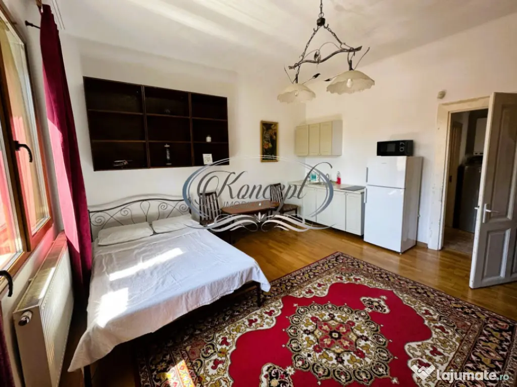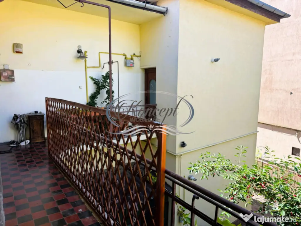 Koncept Imobiliare va ofera spre vanzare un apartament situat in zona centrala a orasului, aproape de Piata Mihai Viteazul, intr-un imobil de tip vila cu doar doua apartamente, edificat in anul 1955 si recent renovat integral. Proprietatea se afla la etajul 1 al cladirii cu regim de inaltime D+P+1+Pod si beneficiaza de acces intr-o curte comuna pavata, dotata cu poarta automatizata si doua locuri de parcare. Apartamentul dispune de o suprafata utila de 90 mp, la care se adauga un balcon si o terasa, si se remarca prin tavanele inalte de 3,8 m, care confera spatiului o senzatie rara de amplitudine si eleganta. Compartimentarea actuala include trei camere, doua bai cu geam, doua bucatarii, balcon si terasa, iar proprietatea este impartita in prezent in doua unitati locative distincte. Finisajele sunt moderne, toate instalatiile au fost schimbate, iar apartamentul se vinde mobilat si utilat. Orientarea sudica asigura luminozitate naturala, iar vederea mixta – atat spre curtea imobilului, cat si spre zona libera contribuie la confortul general. Incalzirea se realizeaza prin centrala termica proprie, iar ca spatii suplimentare de depozitare, proprietatea dispune si de pod, un avantaj practic. Pozitionarea excelenta permite acces rapid catre toate facilitatile din proximitate: magazine, restaurante, institutii, mijloace de transport in comun si zone de interes cultural. Datorita specificului cladirii, amplasamentului si configurarii, apartamentul se preteaza atat ca locuinta de familie, cat si ca birou, investitie sau regim hotelier, oferind posibilitati multiple de utilizare. Pentru informatii suplimentare, programarea unei vizionari sau pentru a afla oferta noastra completa va stam la dispozitie telefonic, prin e-mail sau la sediul agentiei noastre, pe str. Aviator Badescu, nr. 19, Cluj-Napoca. Id intern: P20984 Confort: 1 Tip imobil: Casă/Vilă Număr Băi: 2 Nr. locuri parcare: 2