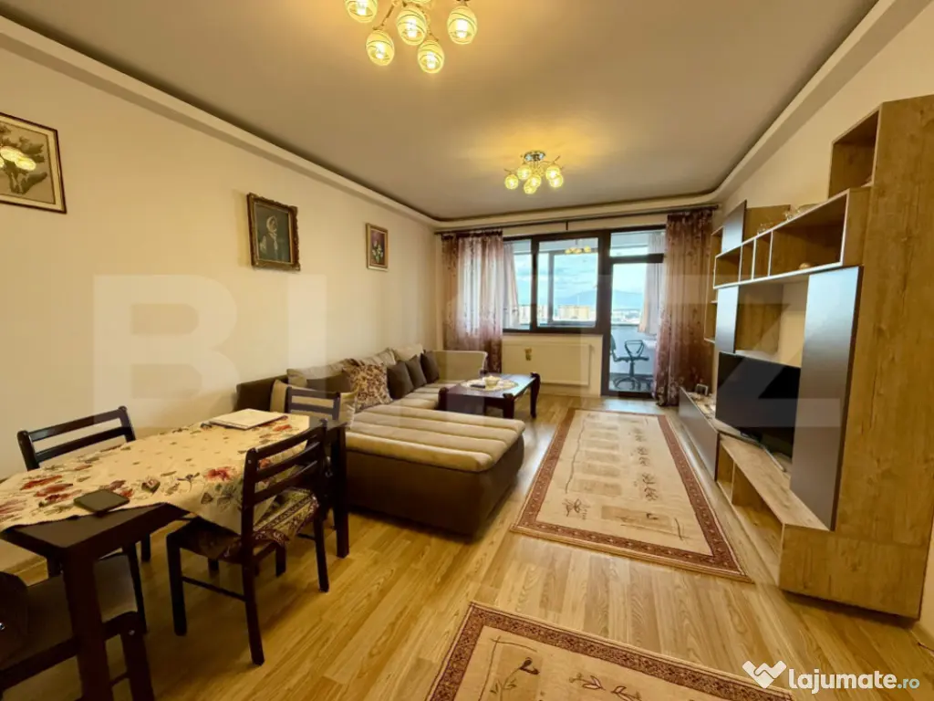 Blitz Imobiliare va propune spre vânzare un apartament superb cu 2 camere,cu o suprafata de 75mp, situat în Cartierul Tractorul, la câțiva pași de Mall Coresi , una dintre cele mai căutate zone din Brașov. ???? Etaj: 8 din 10 Panoramă deosebită, cu priveliști spectaculoase asupra Masivului Piatra Craiului și Măgurii Codlei – un adevărat tablou natural, zi de zi ???? Apartamentul este ca nou, fiind folosit exclusiv ca locuință de vacanță, de o singură persoană, ocazional, ceea ce se reflectă în starea impecabilă a finisajelor și mobilierului Se vinde complet mobilat și utilat, cu un design modern și electrocasnice de o buna calitate, atent alese pentru confort și durabilitate Bucătărie complet echipată Electrocasnice incluse – totul pregătit pentru mutare imediată ???? Centrală termică Viessmann – eficiență energetică și confort termic pe tot parcursul anului Mobilier modern, finisaje elegante și o atmosferă primitoare, ideală atât pentru locuire personală, cât și pentru investiție premium Parcare:nu este inclusă în preț, însă se poate achiziționa / închiria prin asociația de proprietari ???? Acces rapid către: Mall Coresi restaurante, cafenele mijloace de transport zone verzi și spații de relaxare Un apartament rafinat, cu panoramă spectaculoasă, într-o locație excelentă – gata să devină „acasă” sau o investiție sigură! ???? Pentru mai multe detalii sau pentru programarea unei vizionări, nu ezitați să mă contactați Cod ofertă / ID BLITZ: P163299 Id intern: P163299 Confort: 1 Tip imobil: Bloc de apartamente Număr Băi: 1