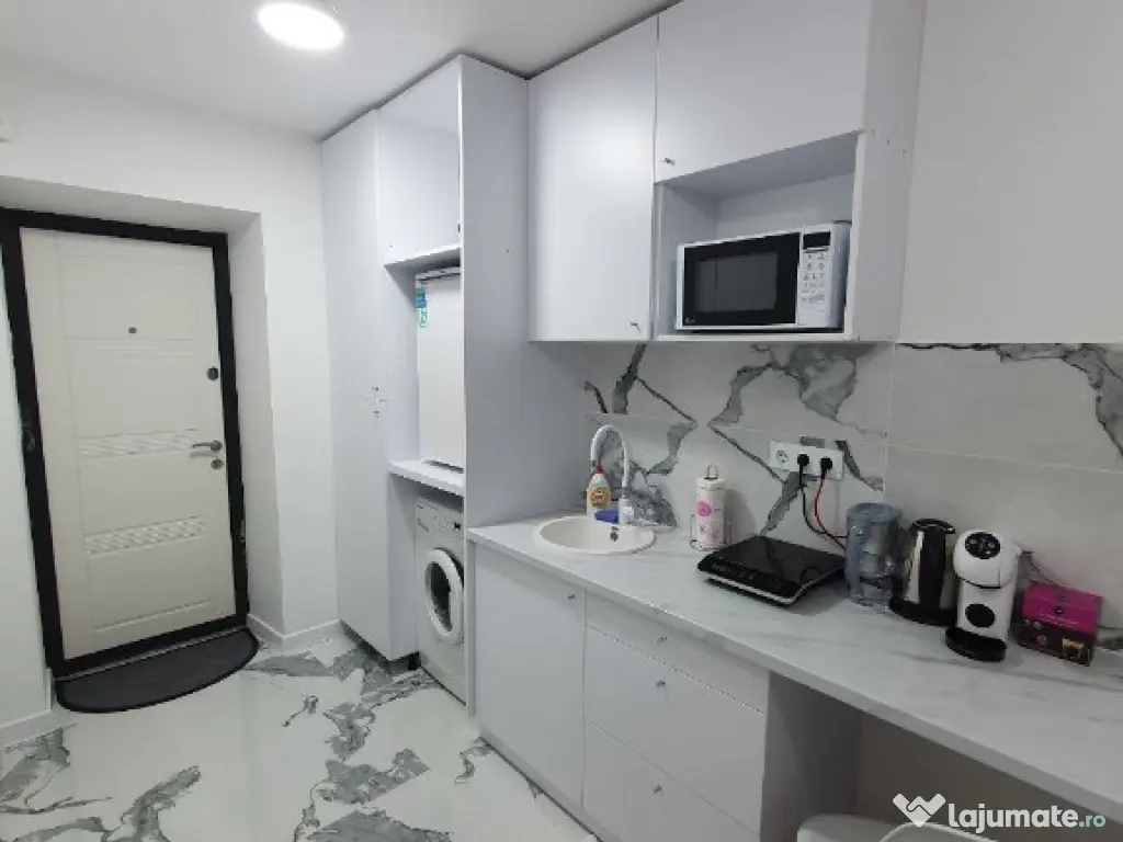 Oferim spre inchiriere un apartament cu o camera, 38mp utili, intr-un bloc cu lift Apartamentul este situat la etajul 3 intr-un bloc cu 7 etaje. Apartamentul are o camera, bucataie, baie, hol.Este complect mobilat si utilat modern, dispune de aer conditionat, Smart TV, masina de spalat etc.Apartamentul este disponibil spre inchiriere imediat Confort: 1 Tip imobil: Bloc de apartamente