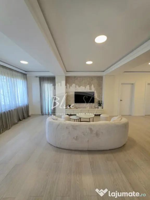 Interiorul este amenajat în tonuri elegante, cu finisaje premium și mobilier ales cu grijă, conturând un ambient rafinat, dar primitor. Fiecare cameră este gândită pentru a oferi funcționalitate și confort, păstrând în același timp o estetică modernă și aerisită.