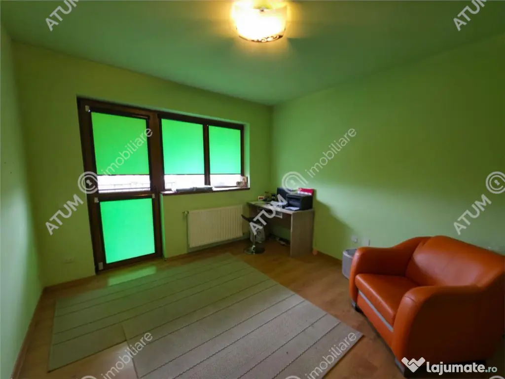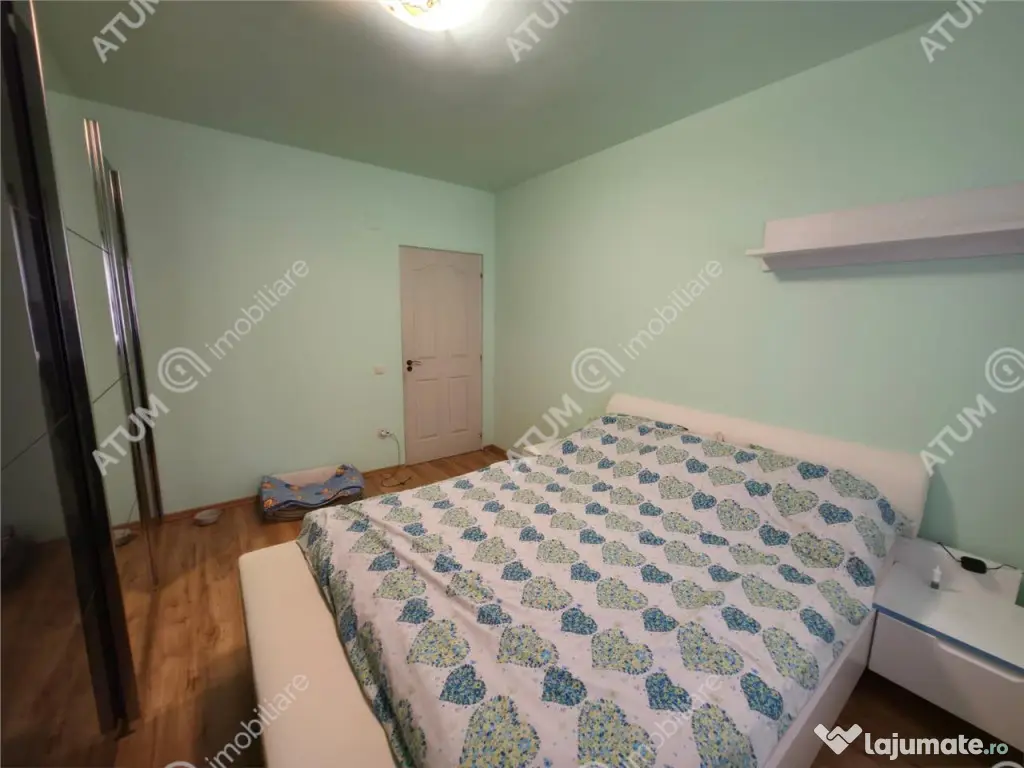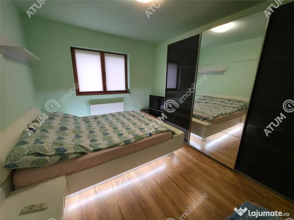 De vanzare apartament modern finalizat in anul 2010 compus din 3 camere cu 2 bai si terasa, in suprafata totala de 116 mp, orientat SUD-EST, localizat din zona Arhitectilor din Sibiu. Suprafata utila este de 90 mp dispusi in 2 dormitoare spatioase a cate 13 mp, living open space cu bucatarie in suprafata de 40 mp modulari sau cu posibilitatea de modificare in 10 mp bucatarie si 30 mp living, bai de 5 si 4 mp, un hol de intrare cu spatiu de pantofar si cuier de 11 mp. Separat de suprafata utila, apartamentul dispune de o terasa spatioasa de 8.5 mp in care accesul se face din camera de zi si dormitor. Proprietatea detine si un loc de parcare privat special amenajat cu intrare cu bariera, separat de zona dedicata vizitatorilor. Apartamentul este dotat cu centrala termica noua in condensatie, incalzire cu calorifere, instalatii de apa noi, instalatii electrice noi din cupru cu iluminare prin spoturi, prize si intrerupatoare, instalatie de aer conditionat si aparataj montat in living. Finisajele sunt moderne si realizate la o calitate superioara, precum pardoseala placata cu gresie de dimensiuni mari, baile, iar in bucatarie si dormitoare pardoselile sunt acoperite cu parchet laminat cu grosimea de 10 mm, peretii sunt placati cu faianta in bai, iar in dormitoare si living sunt zugraviti cu vopsea lavabila. Usa de acces este metalica placata cu panou din MDF iar cele din interior sunt din lemn. Livingul este luminos dotarita unei zone vitrate generoase inchise cu geam termopan cu tamplarie din PVC. Locuinta se preda complet mobilata cu mobilier de bucatarie modern realizat pe comanda cu electrocasnice incastrate precum: plita electrica, hota, cuptor electric, cuptor cu microunde, frigider si masina de spalat vase. Livingul dispune de canapea, comoda, dormitoarele cu mobilierul specific si televizor, baile cu obiecte sanitare, masina de spalat rufe. Apartamentul este situat la etajul 2 inalt intr-un imobil cu 4 etaje si parter, interfon pentru accesul securizat in casa scarii. Acesta este pozitionat in una dintre cele mai ravnite zone din Arhitectilor, avand acces facil la spatii comerciale, magazinele la doar 2 minute de mers pe jos, institutii de invatamant si alte puncte de interes major. Valoarea de achizitie a locuintei este de 140.000 euro negociabil. ID intern: 2964. Confort: 1 Tip imobil: Bloc de apartamente Număr Băi: 2 Posibilitate parcare: Da Nr. locuri parcare: 1